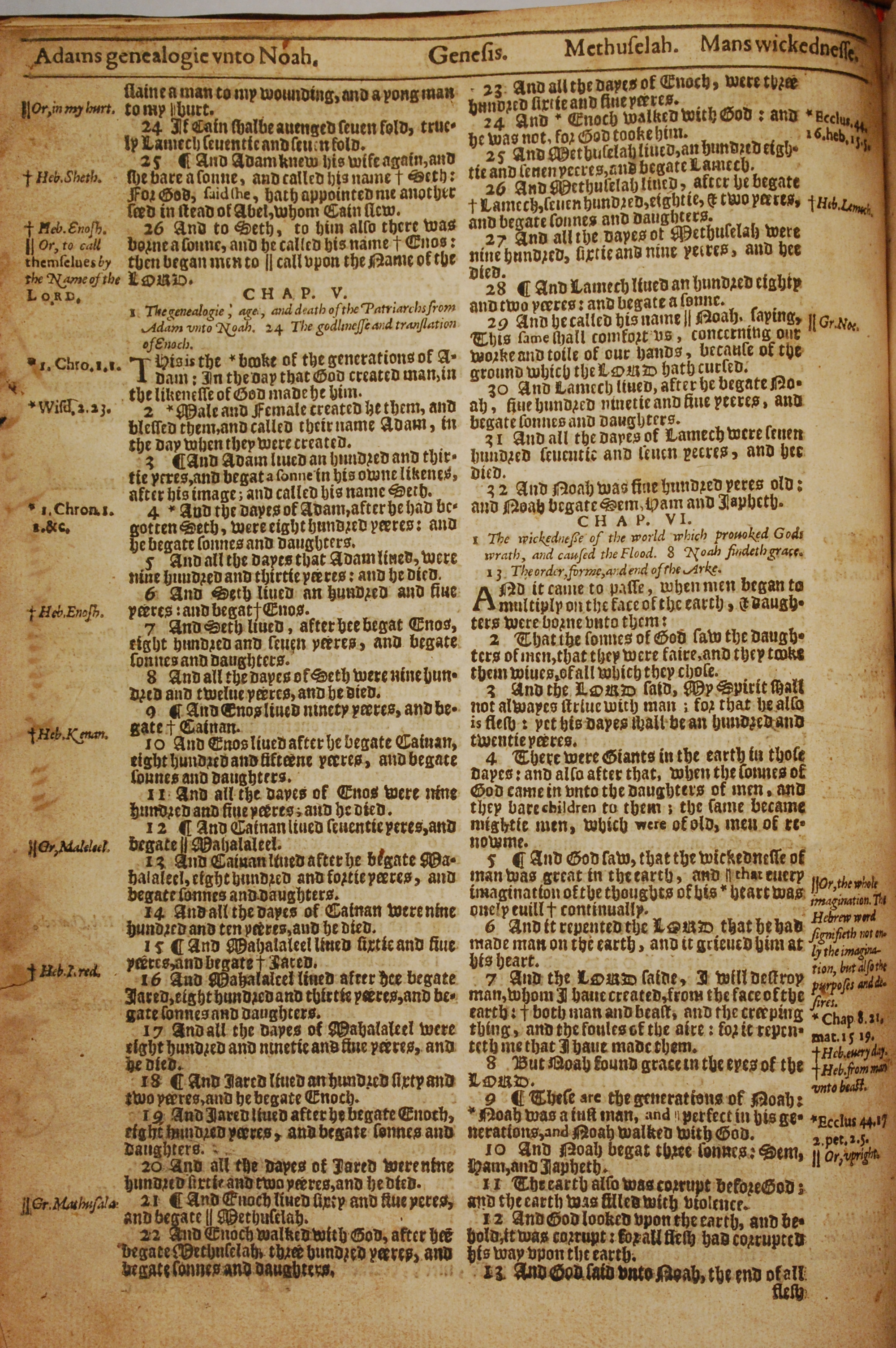 1613年The Genealogies recorded in the sacred scriptures 创世记 4 章 24 节到 6 章 13 节