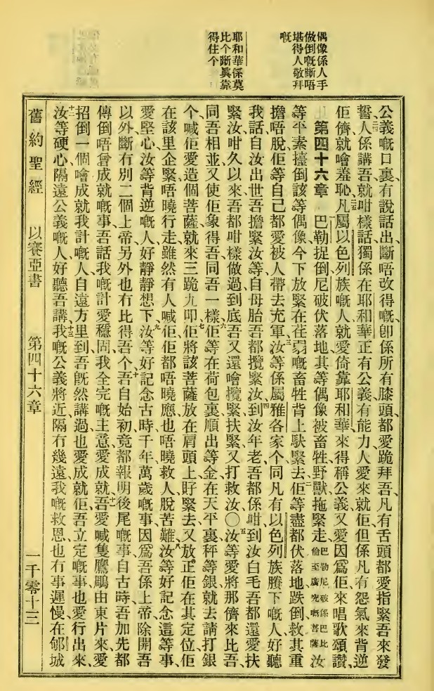 1923年新旧约全书 以赛亚书 45 章 23 节到 46 章 13 节
