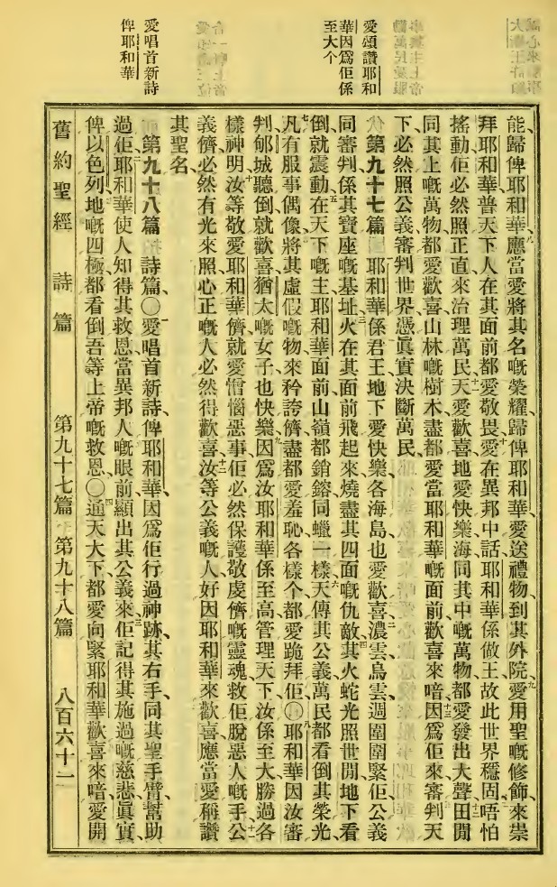 1923年新旧约全书 诗篇 96 章 7 节到 98 章 4 节
