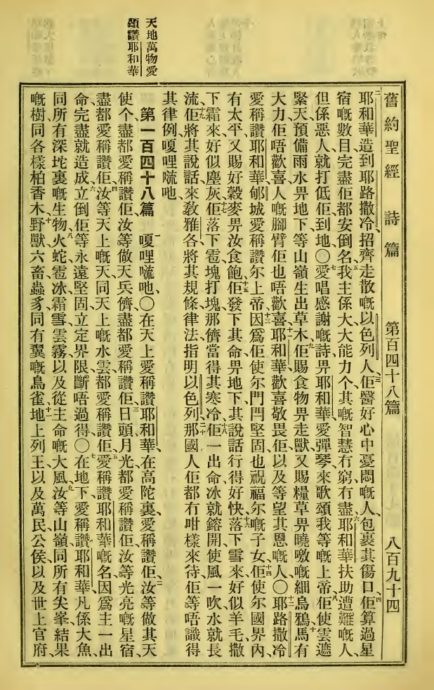 1923年新旧约全书 诗篇 147 章 2 节到 148 章 11 节