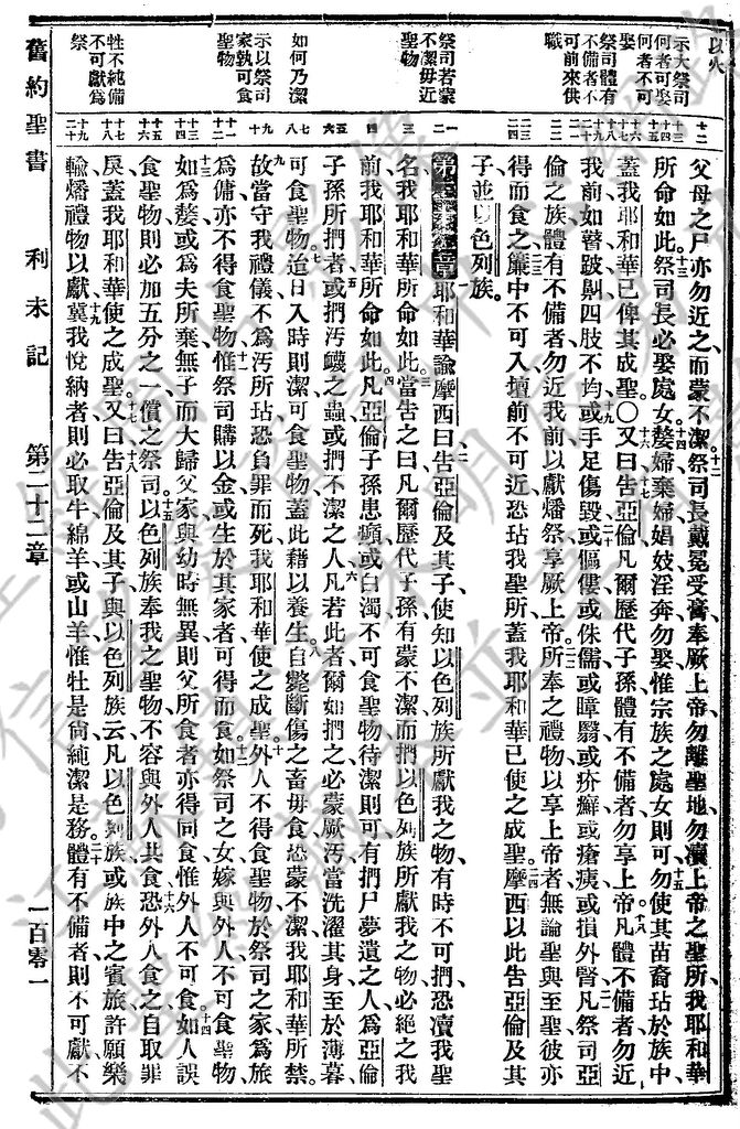 1927年新旧约全书(委办译本) 利未记 21 章 12 节到 22 章 20 节