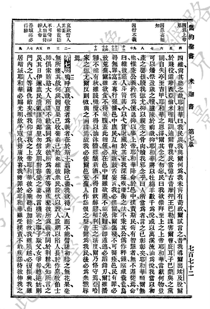 1927年新旧约全书(委办译本) 弥迦书 6 章 4 节到 7 章 9 节