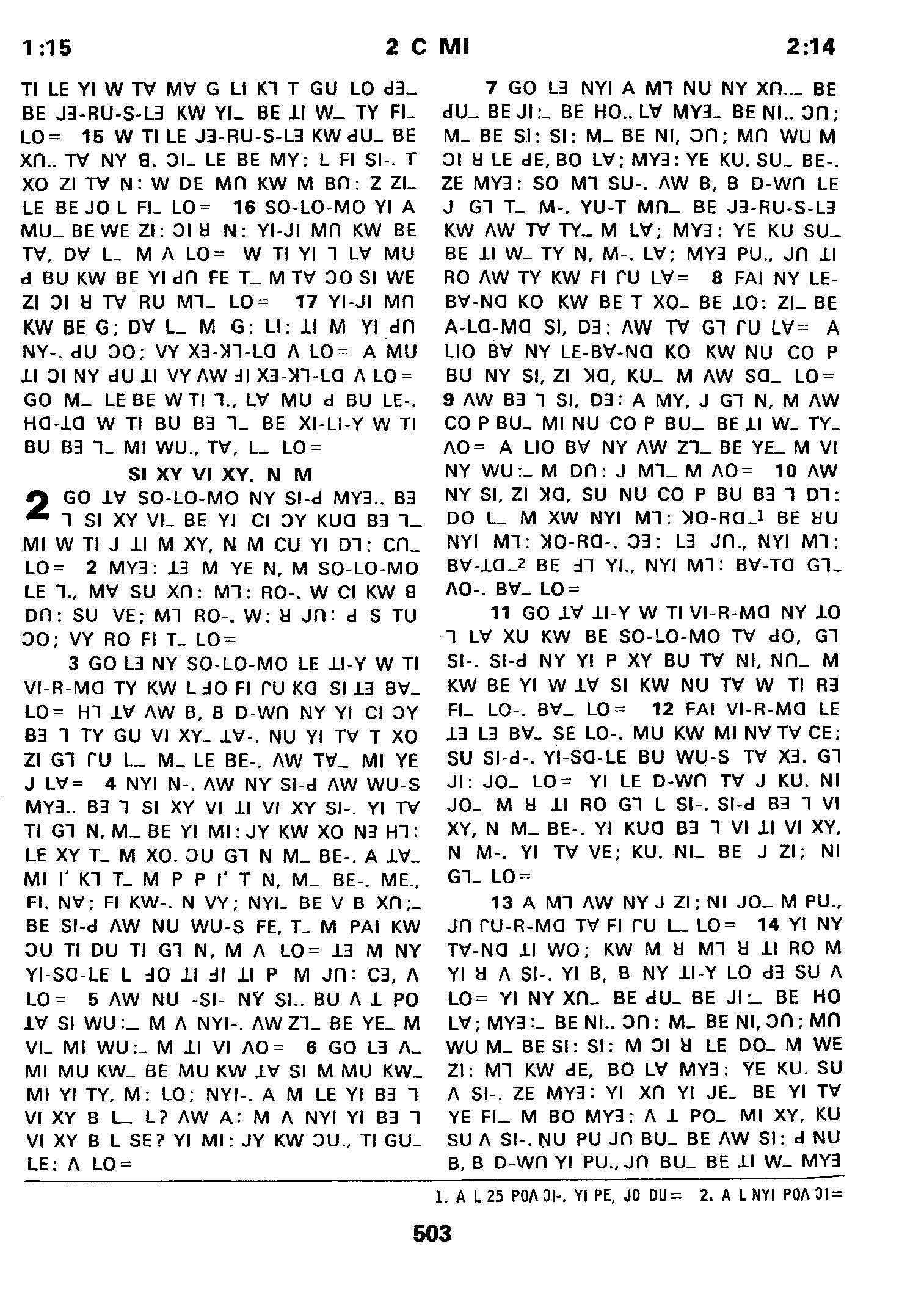 1980年傈僳语圣经全书 历代志下 1 章 15 节到 2 章 14 节