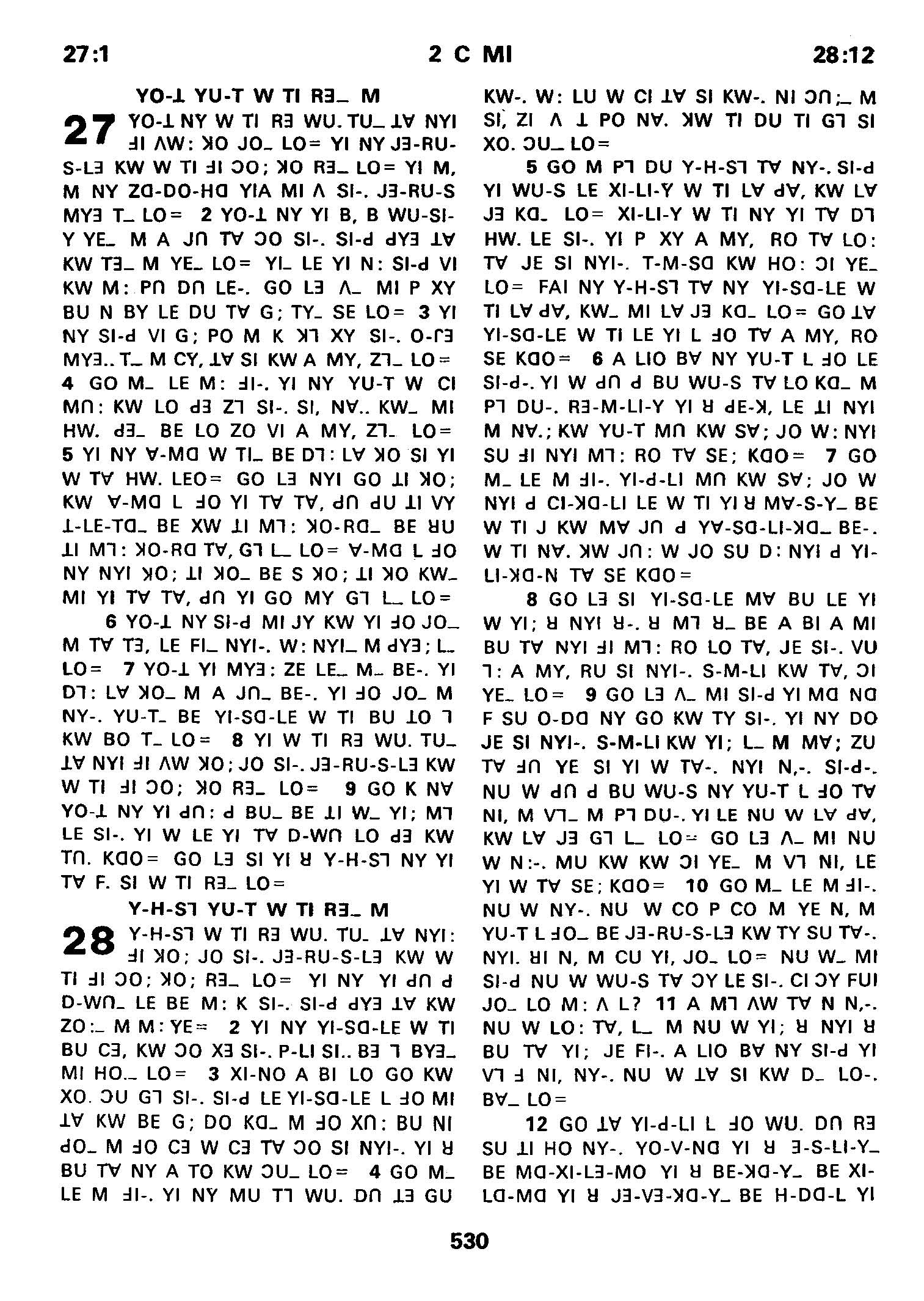 1980年傈僳语圣经全书 历代志下 27 章 1 节到 28 章 12 节