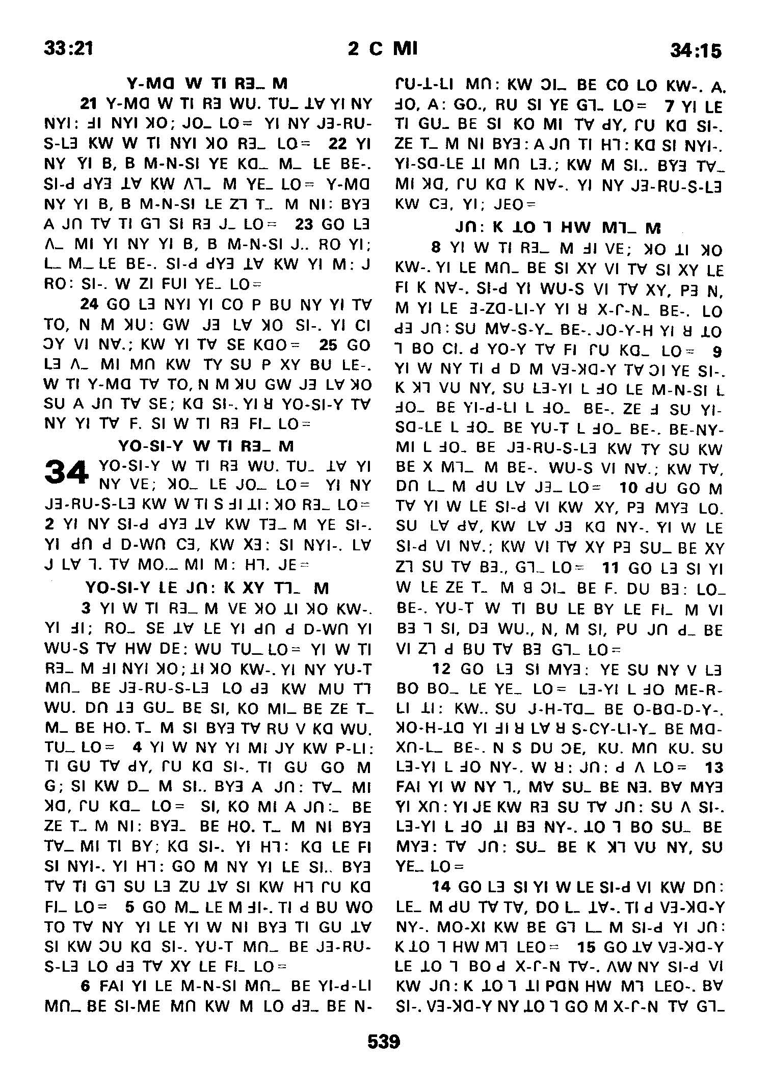 1980年傈僳语圣经全书 历代志下 33 章 21 节到 34 章 15 节