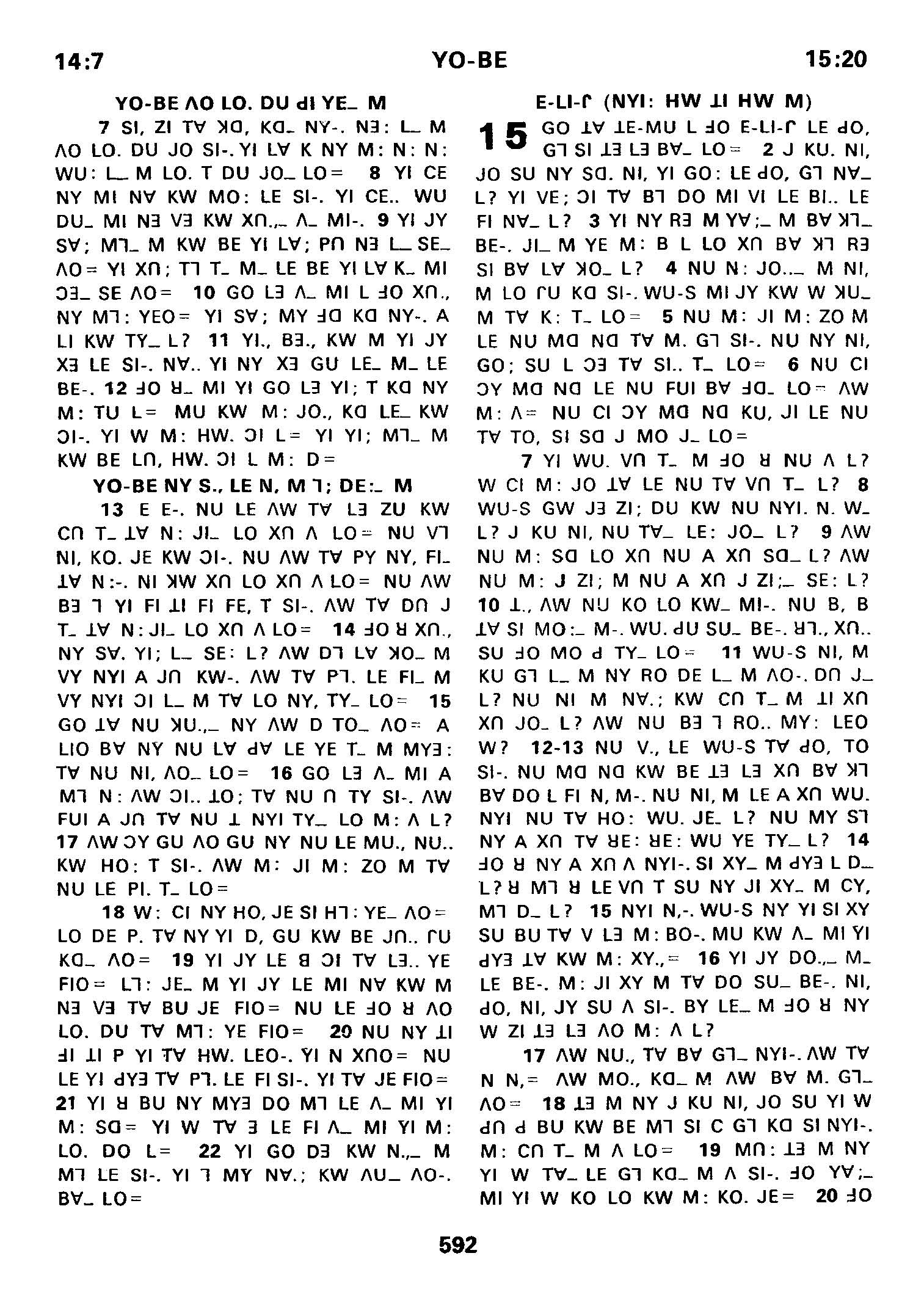 1980年傈僳语圣经全书 约伯记 14 章 7 节到 15 章 20 节