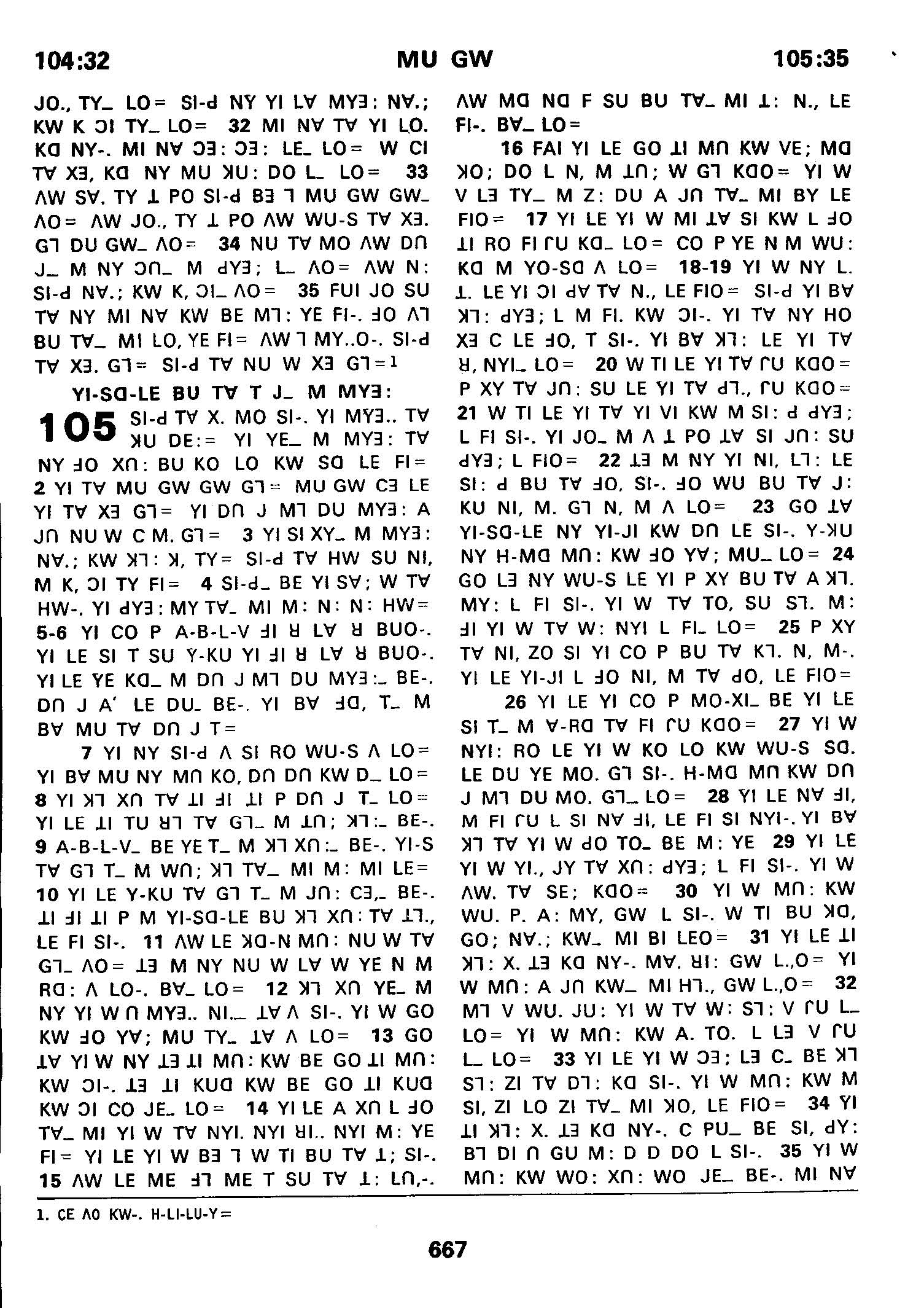 1980年傈僳语圣经全书 诗篇 104 章 32 节到 105 章 35 节