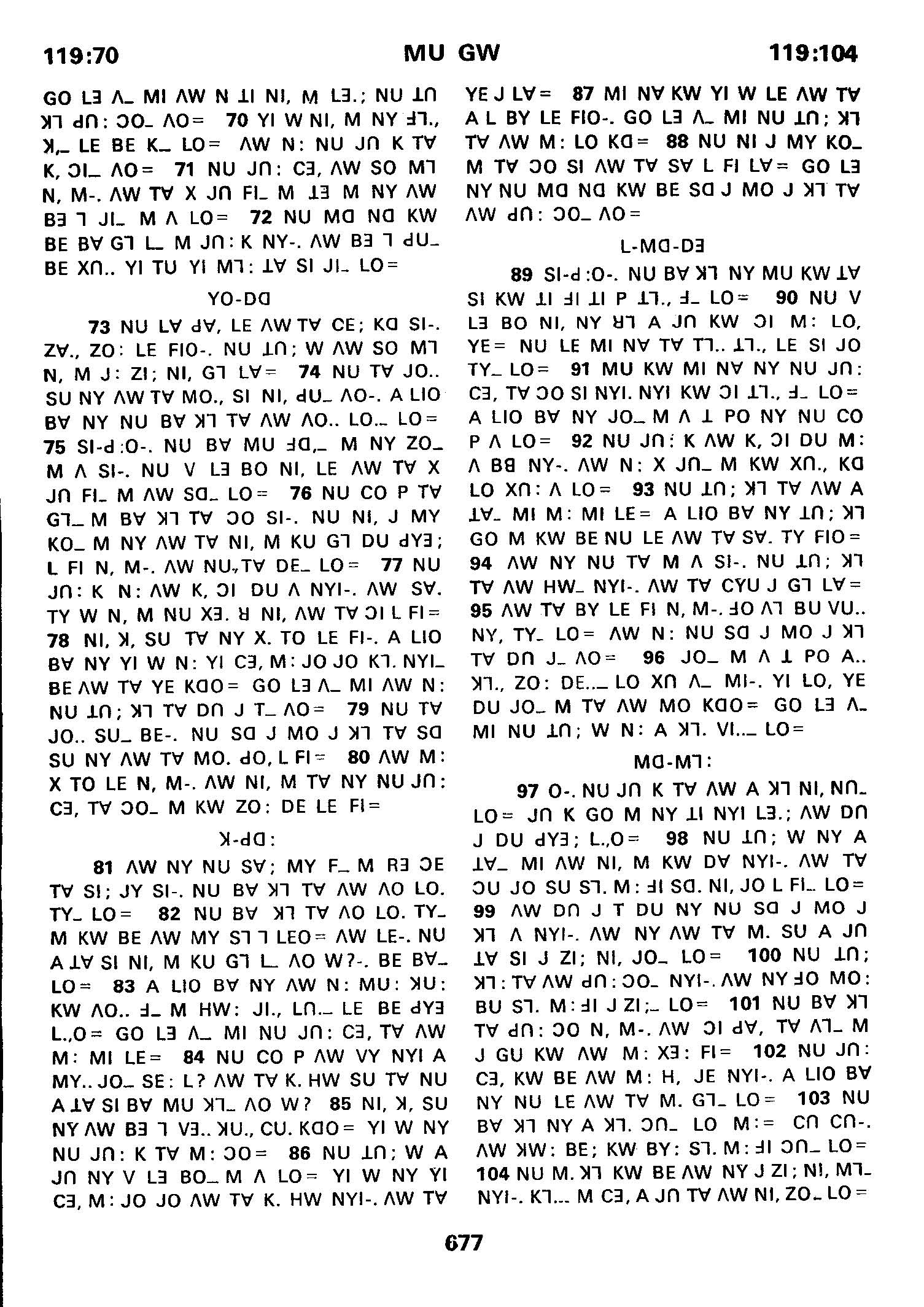 1980年傈僳语圣经全书 诗篇 119 章 70 节到 119 章 104 节