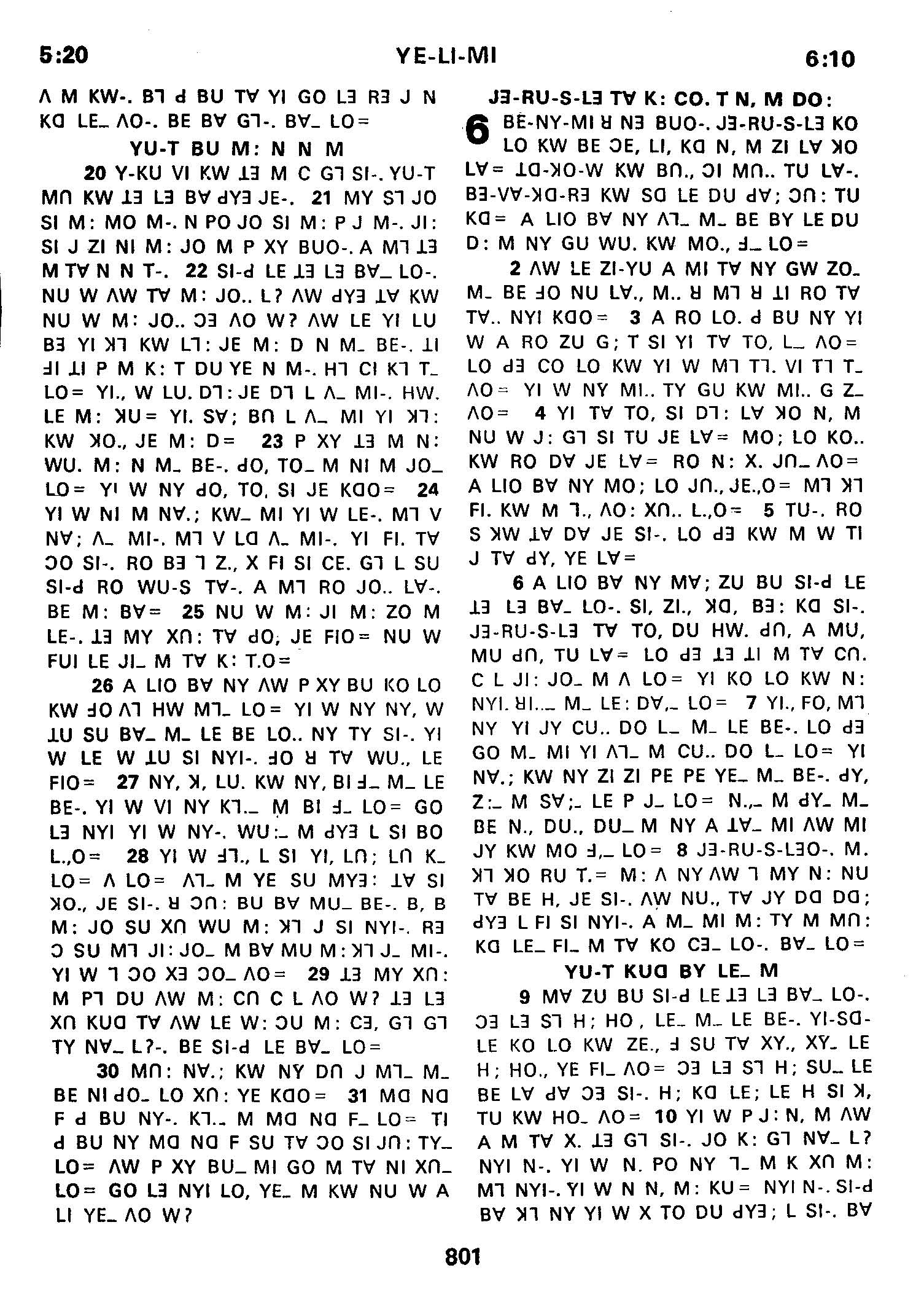 1980年傈僳语圣经全书 耶利米书 5 章 20 节到 6 章 10 节
