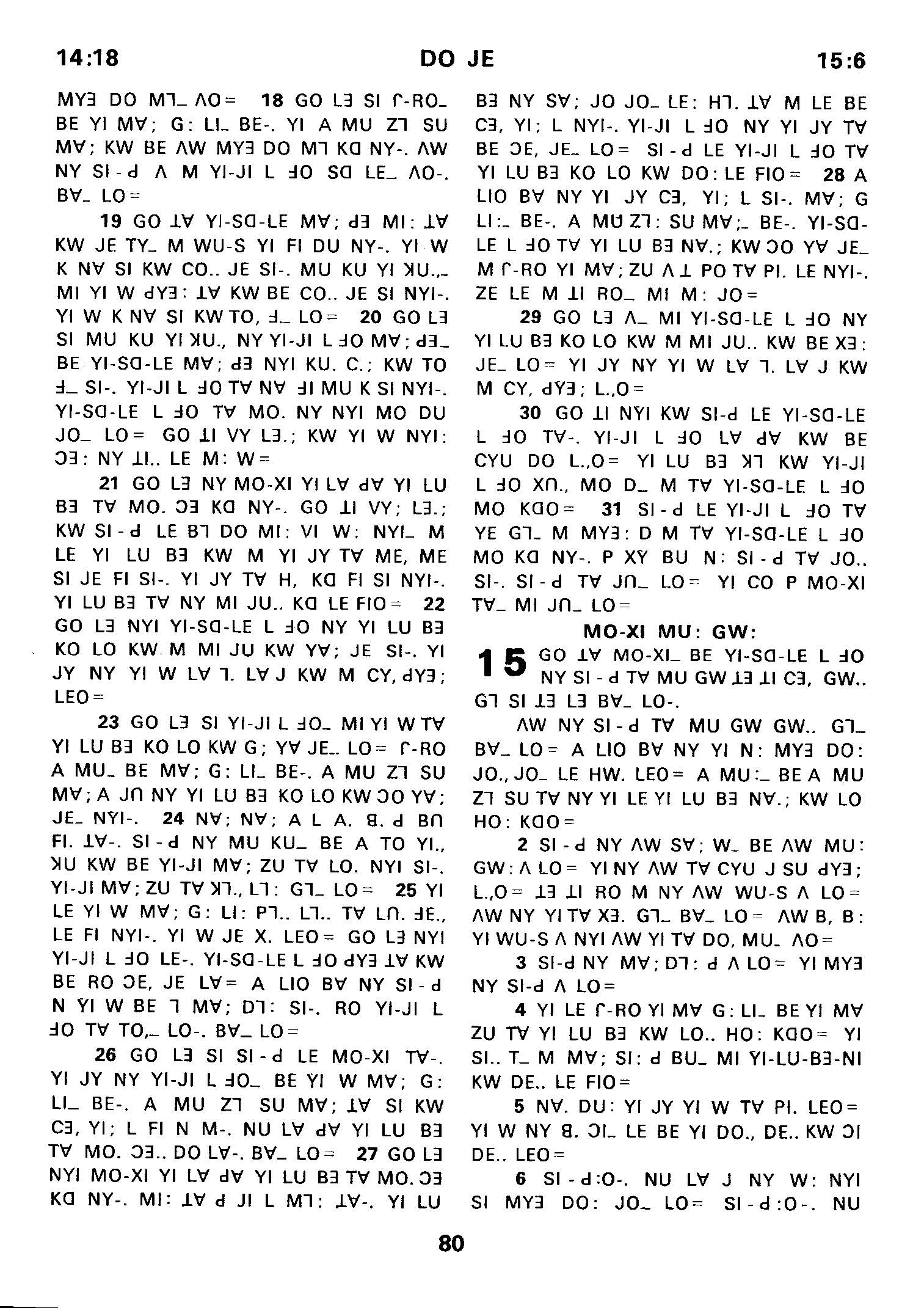 1980年傈僳语圣经全书 出埃及记 14 章 18 节到 15 章 6 节