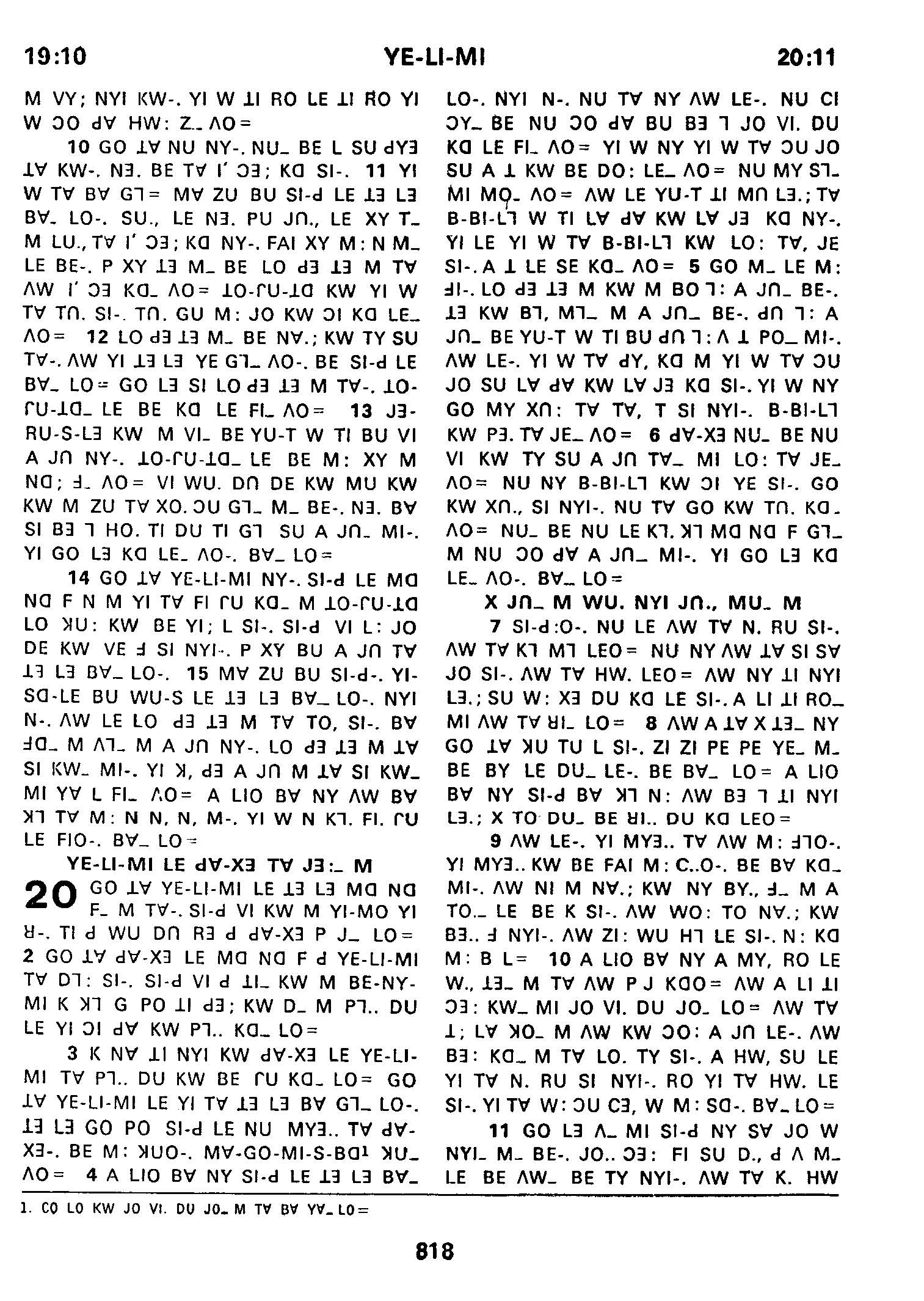 1980年傈僳语圣经全书 耶利米书 19 章 10 节到 20 章 11 节