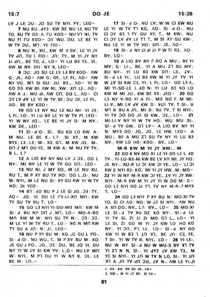 1980年傈僳语圣经全书 出埃及记 15 章 7 节到 15 章 26 节