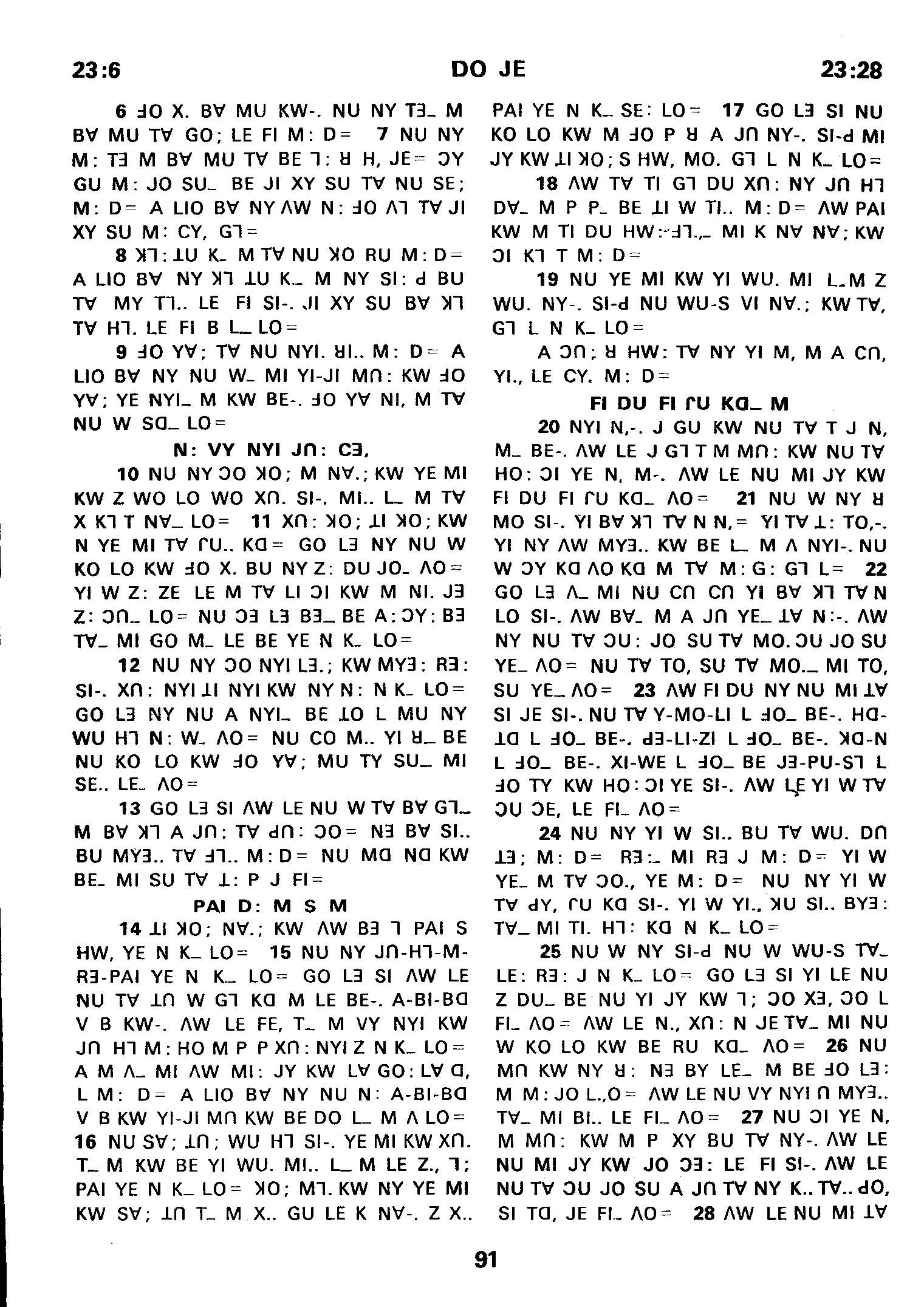 1980年傈僳语圣经全书 出埃及记 23 章 6 节到 23 章 28 节