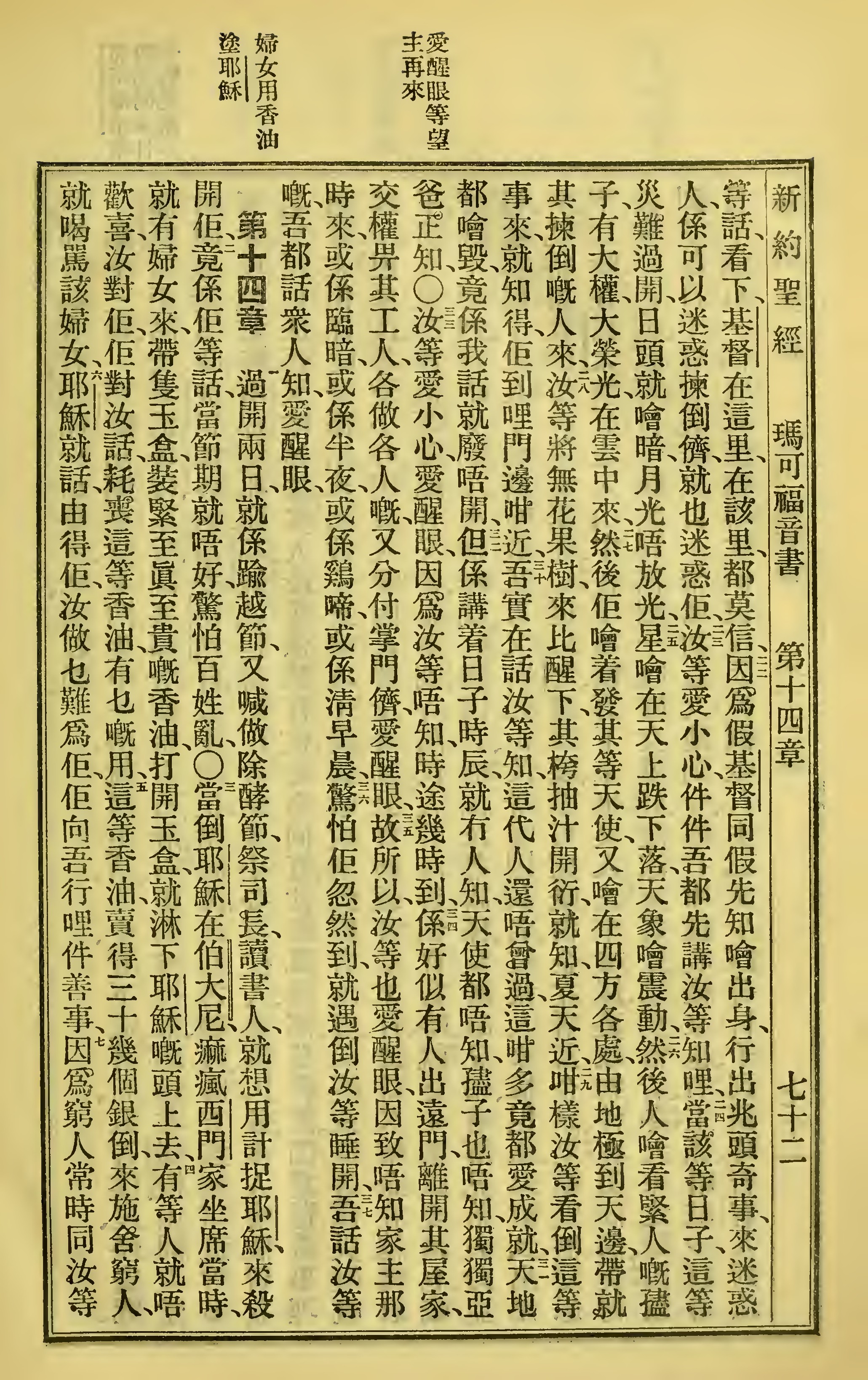 1923年圣经全书 马可福音 13 章 22 节到 14 章 7 节