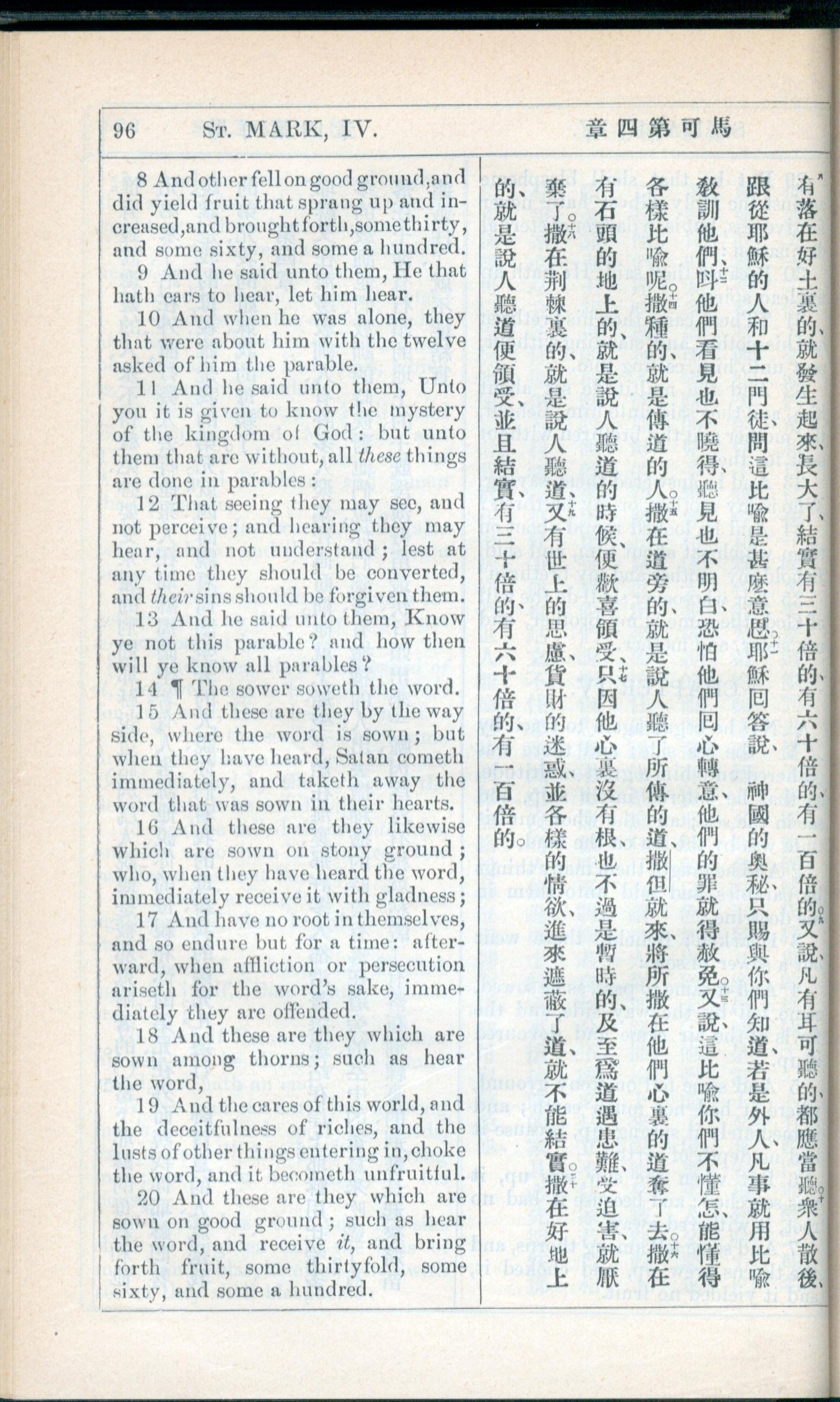 1908年新约全书(中西字) 马可福音 4 章 8 节到 4 章 20 节