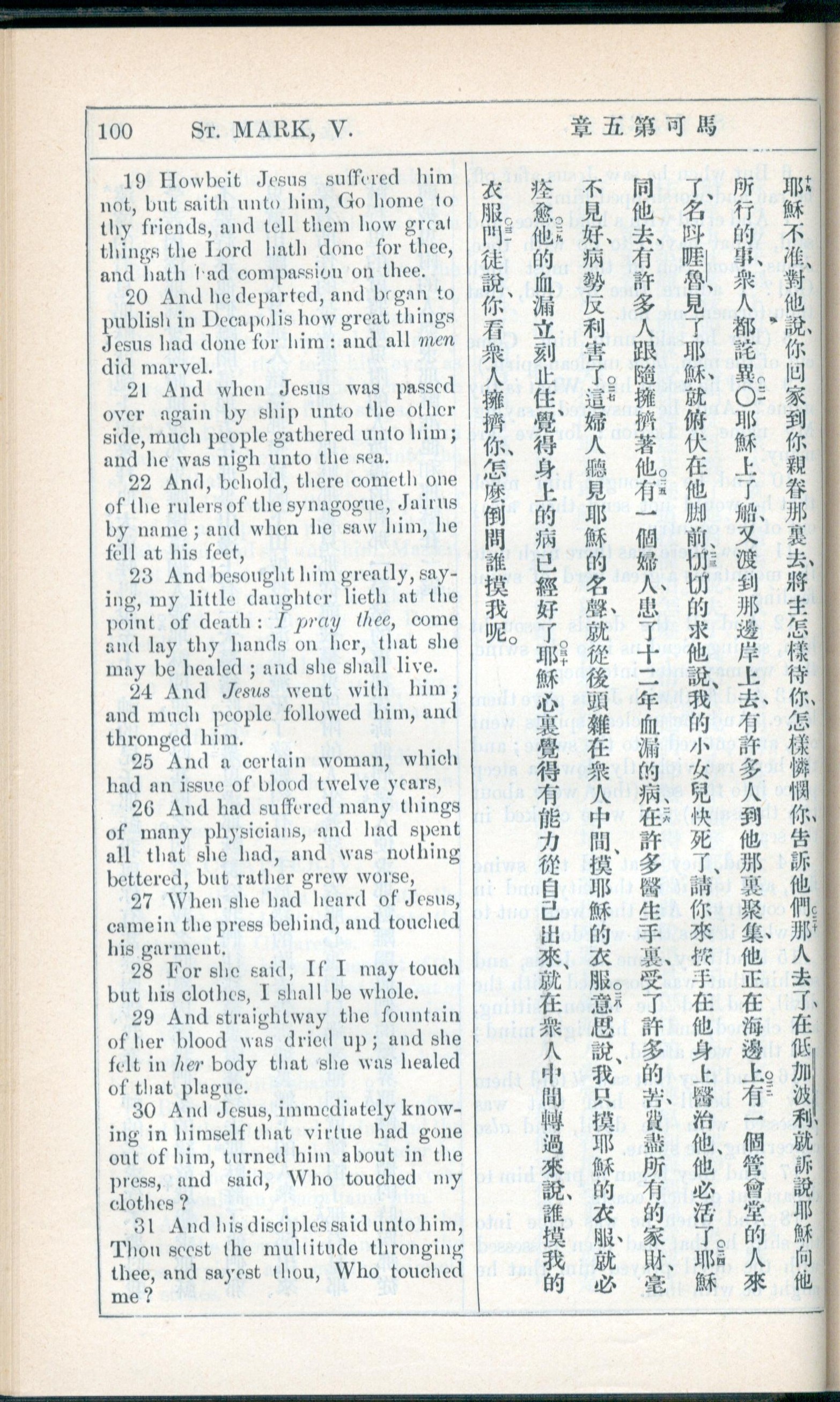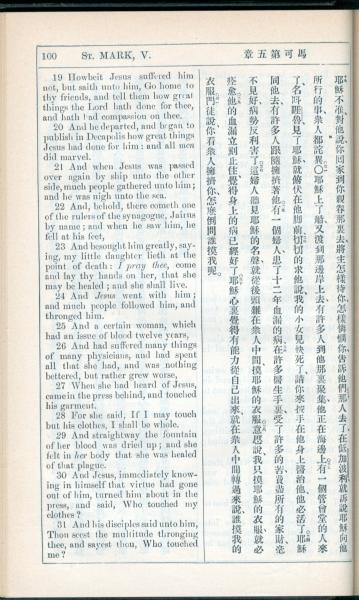 1908年新约全书(中西字) 马可福音 5 章 19 节到 5 章 31 节