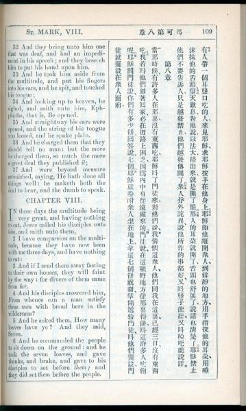 1908年新约全书(中西字) 马可福音 7 章 32 节到 8 章 6 节