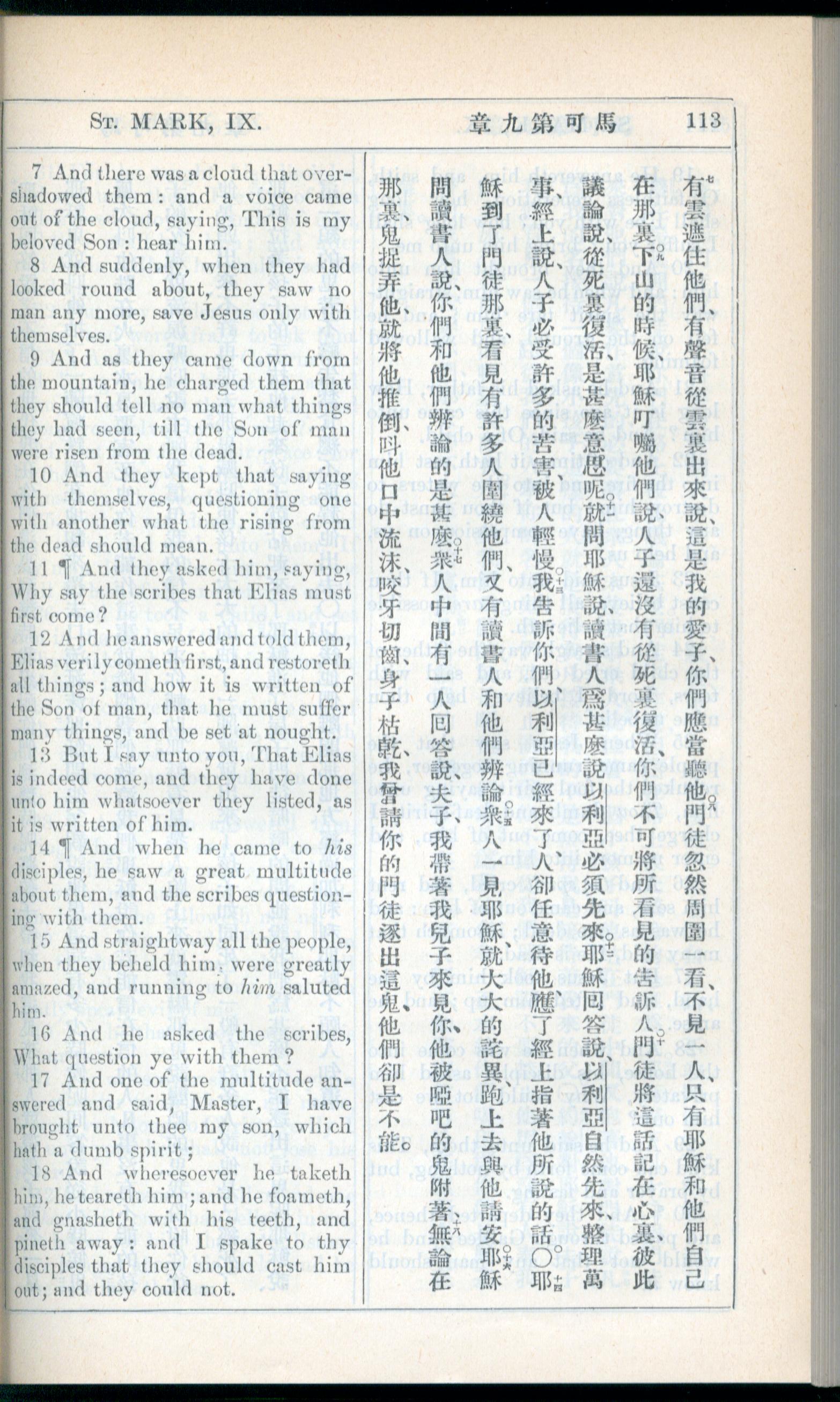 1908年新约全书(中西字) 马可福音 9 章 7 节到 9 章 18 节