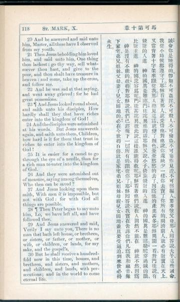 1908年新约全书(中西字) 马可福音 10 章 20 节到 10 章 30 节