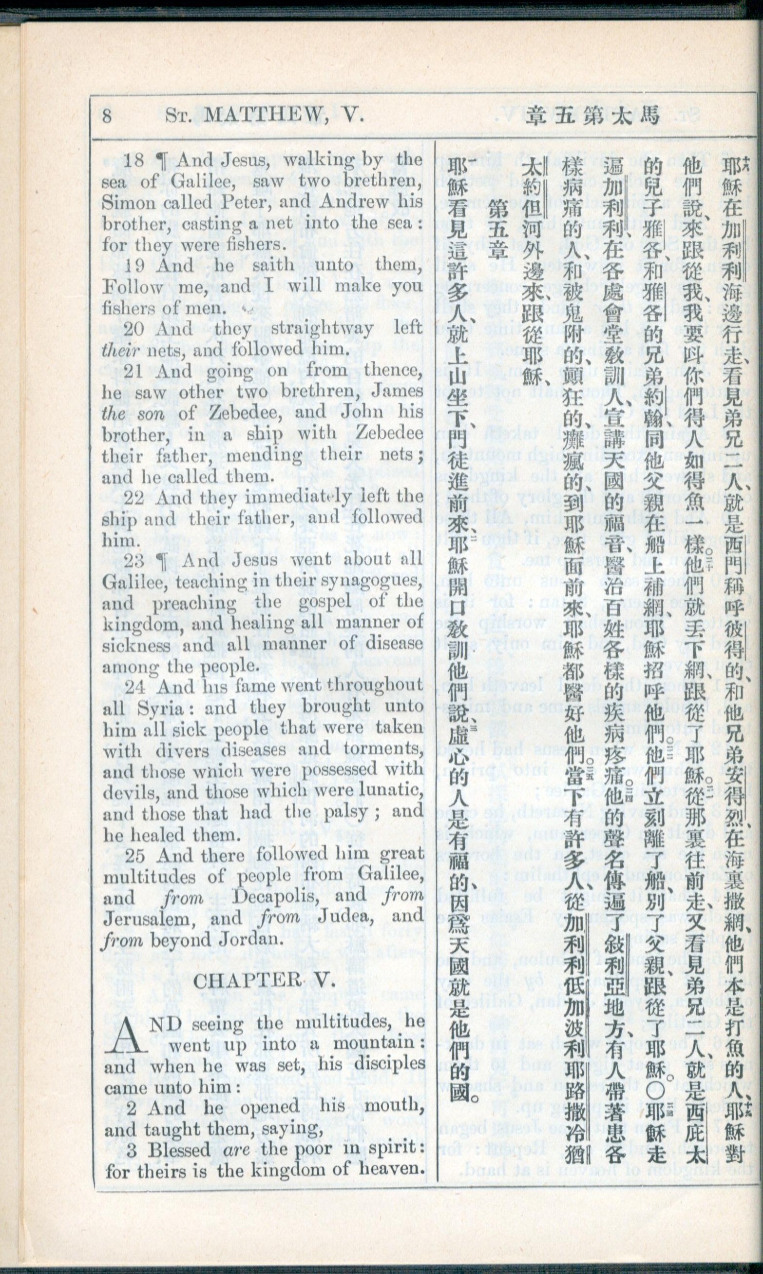 1908年新约全书(中西字) 马太福音 4 章 18 节到 5 章 3 节