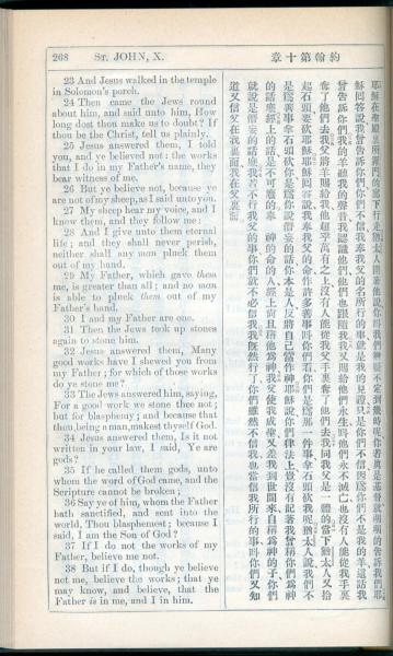 1908年新约全书(中西字) 约翰福音 10 章 23 节到 10 章 38 节