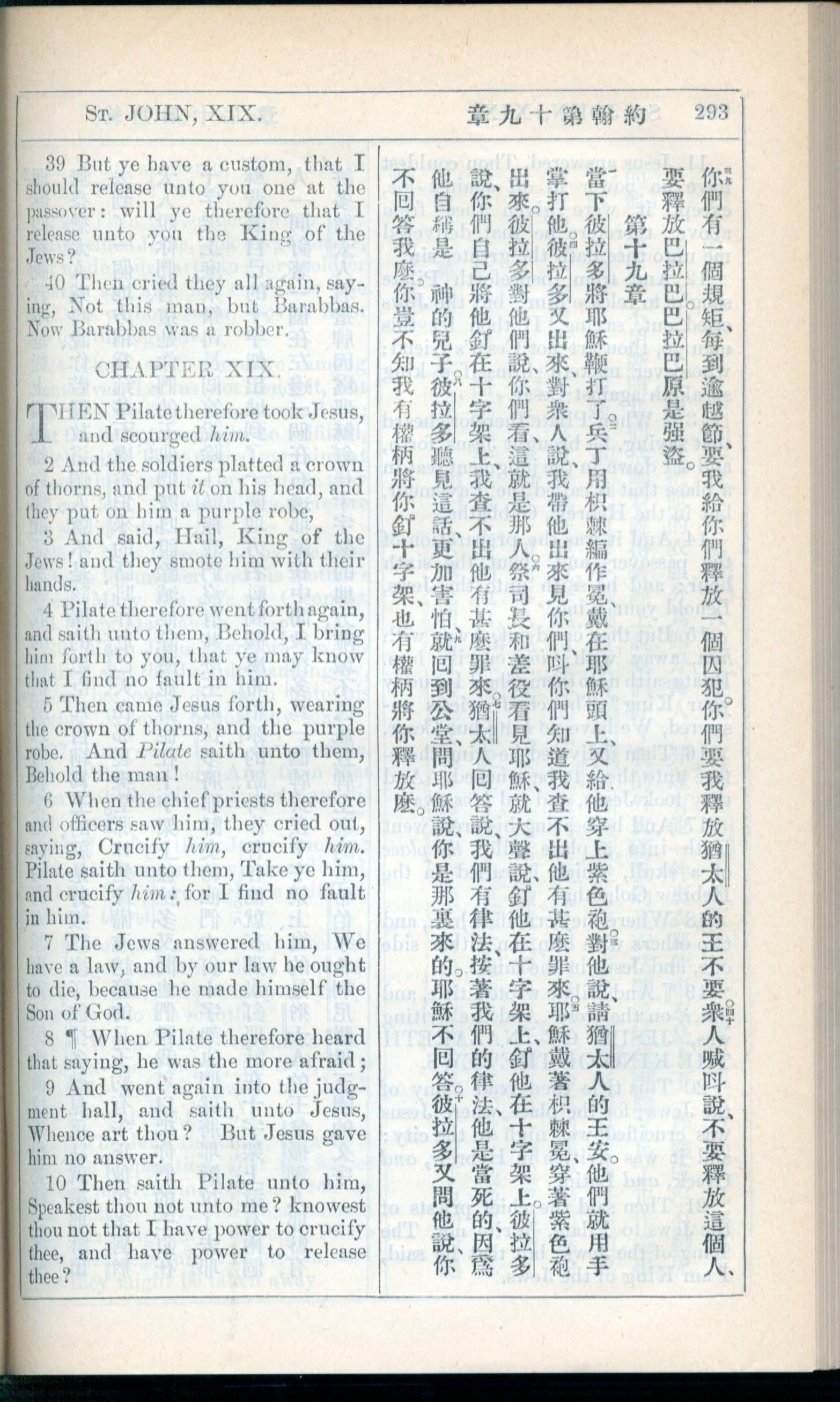 1908年新约全书(中西字) 约翰福音 18 章 39 节到 19 章 10 节