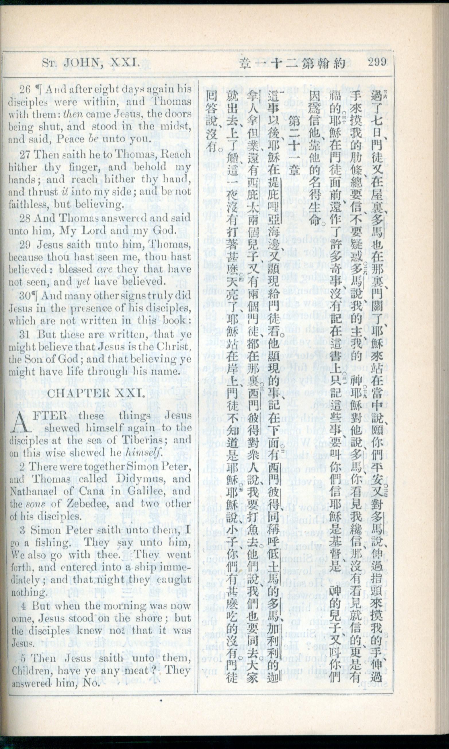 1908年新约全书(中西字) 约翰福音 20 章 26 节到 21 章 5 节