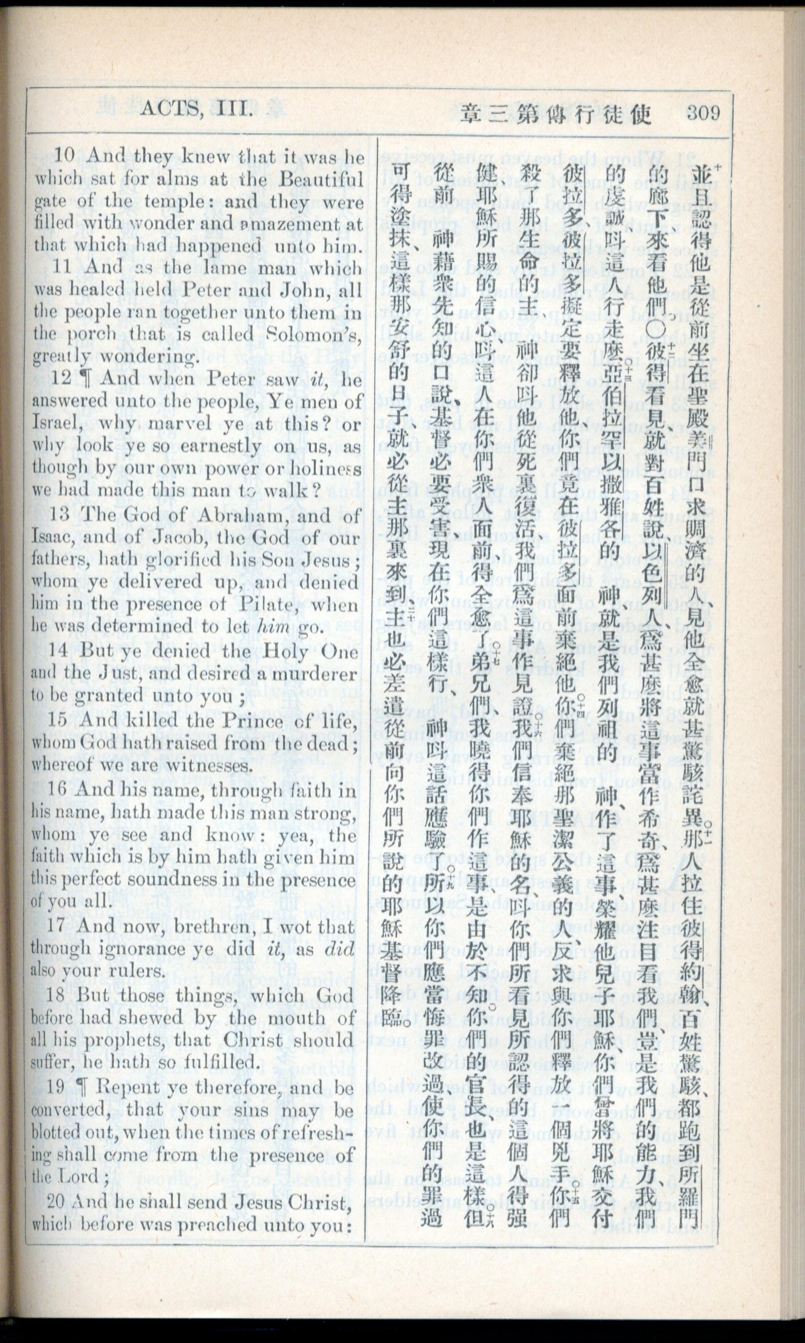 1908年新约全书(中西字) 使徒行传 3 章 10 节到 3 章 20 节