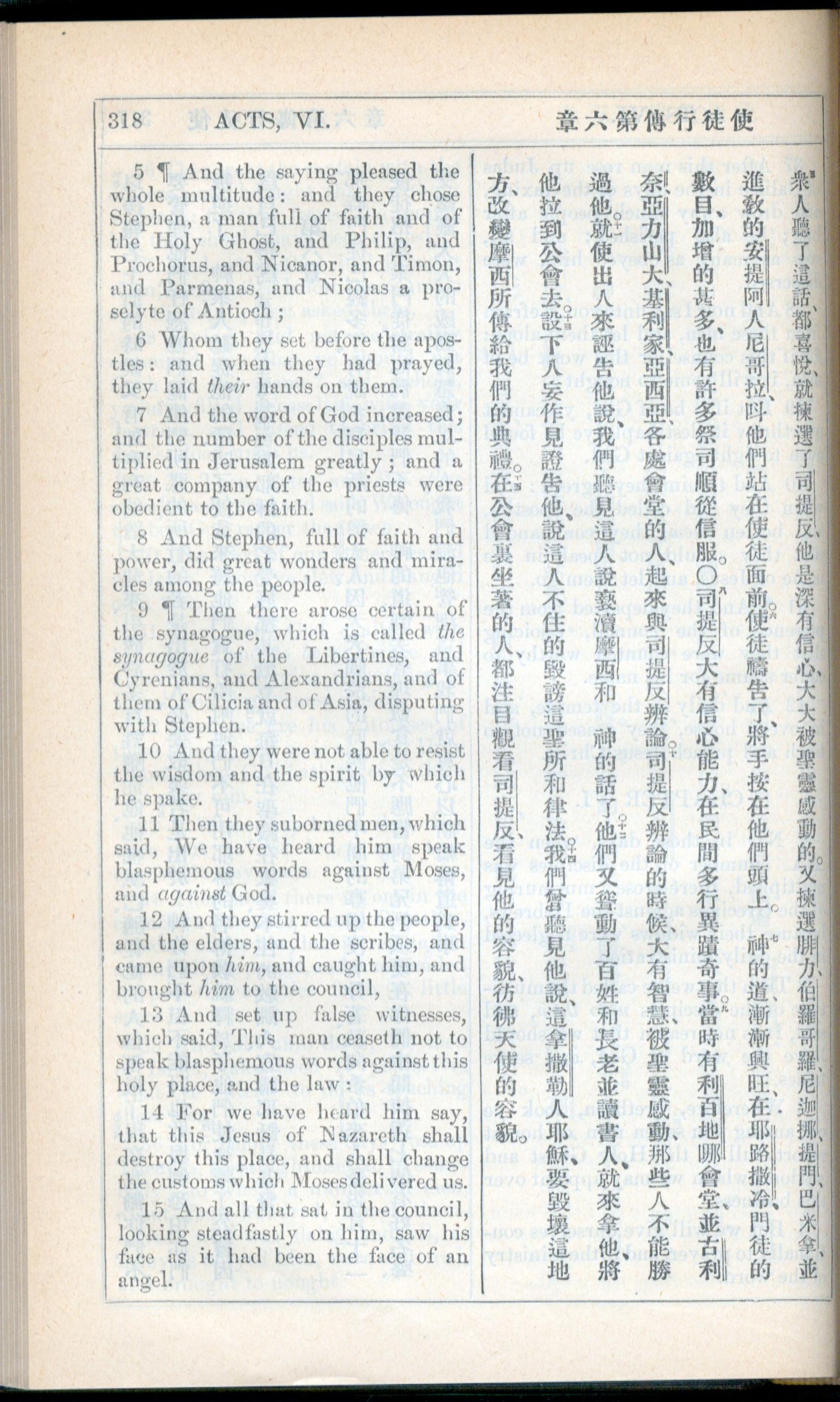 1908年新约全书(中西字) 使徒行传 6 章 5 节到 6 章 15 节