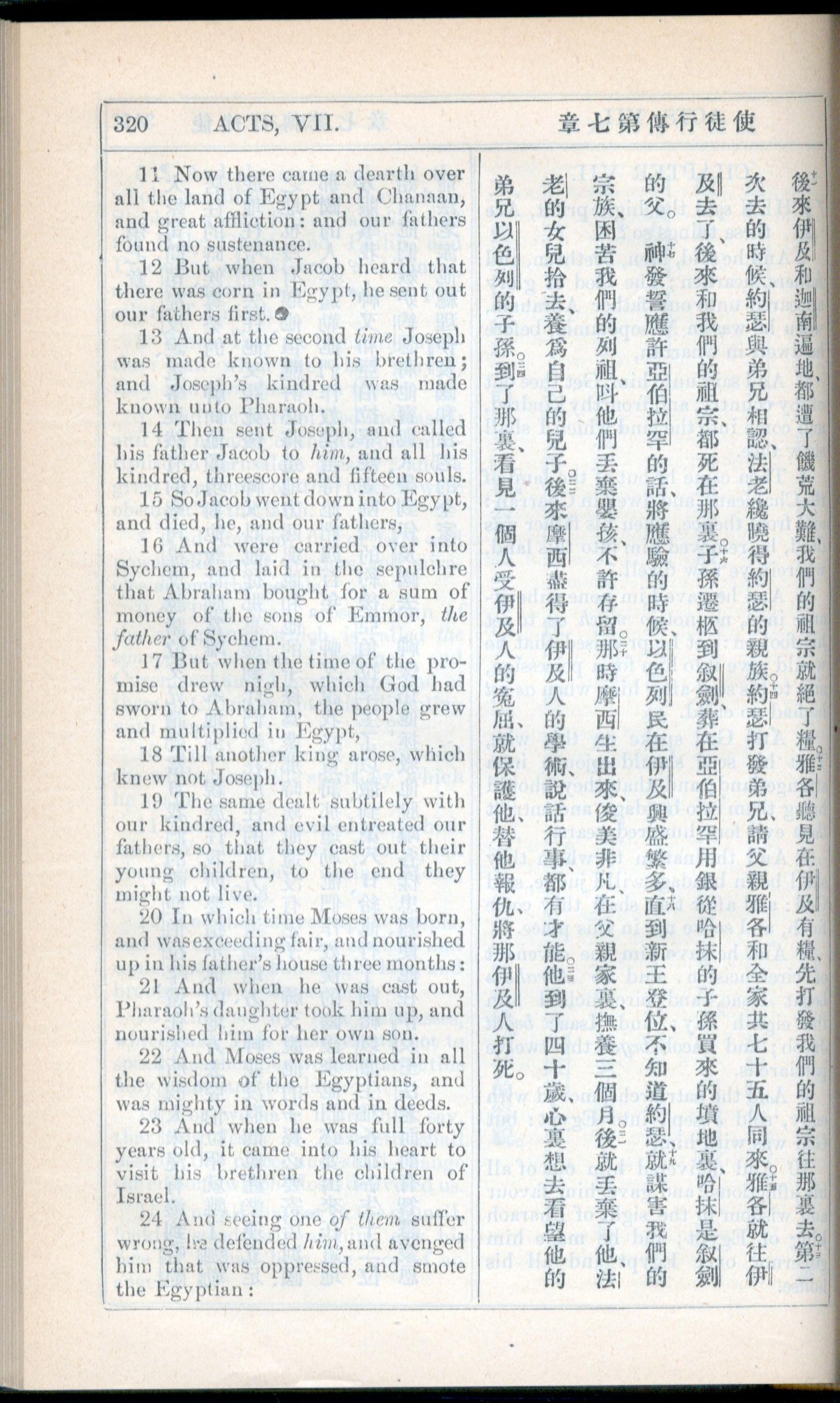 1908年新约全书(中西字) 使徒行传 7 章 11 节到 7 章 24 节