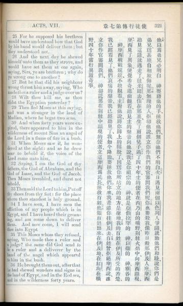 1908年新约全书(中西字) 使徒行传 7 章 25 节到 7 章 36 节