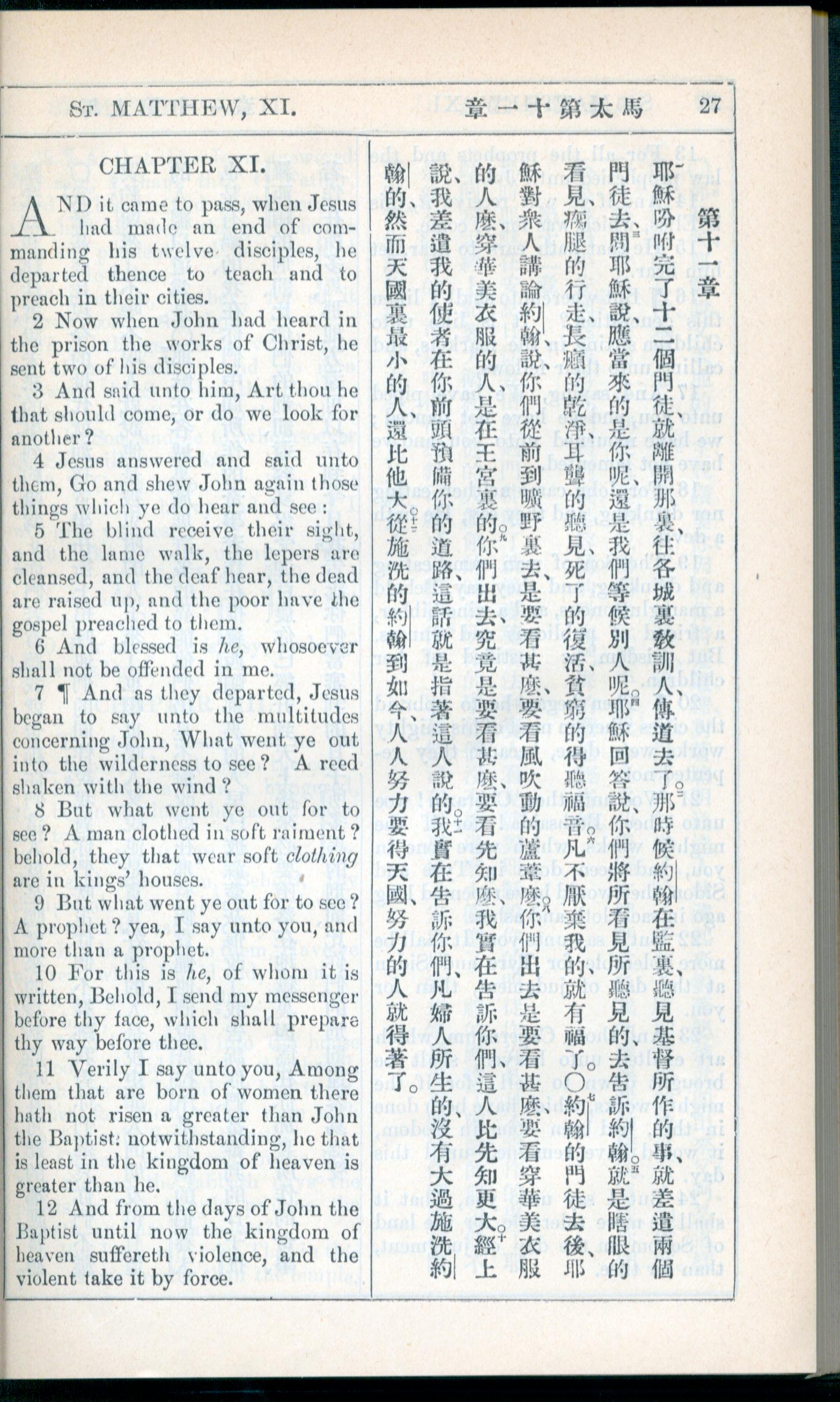1908年新约全书(中西字) 马太福音 11 章 1 节到 11 章 12 节