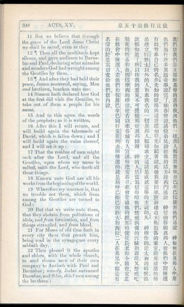 1908年新约全书(中西字) 使徒行传 15 章 11 节到 15 章 22 节