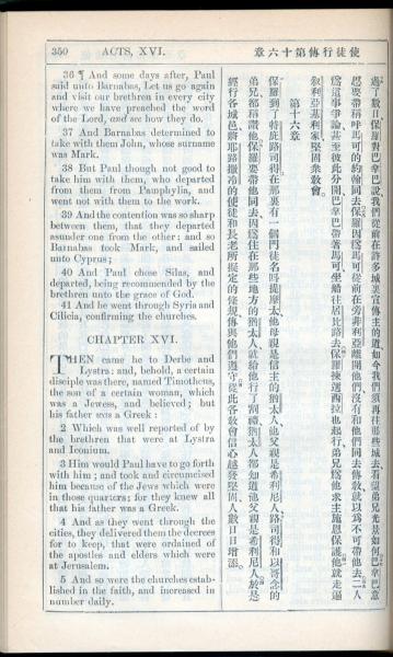 1908年新约全书(中西字) 使徒行传 15 章 36 节到 16 章 5 节