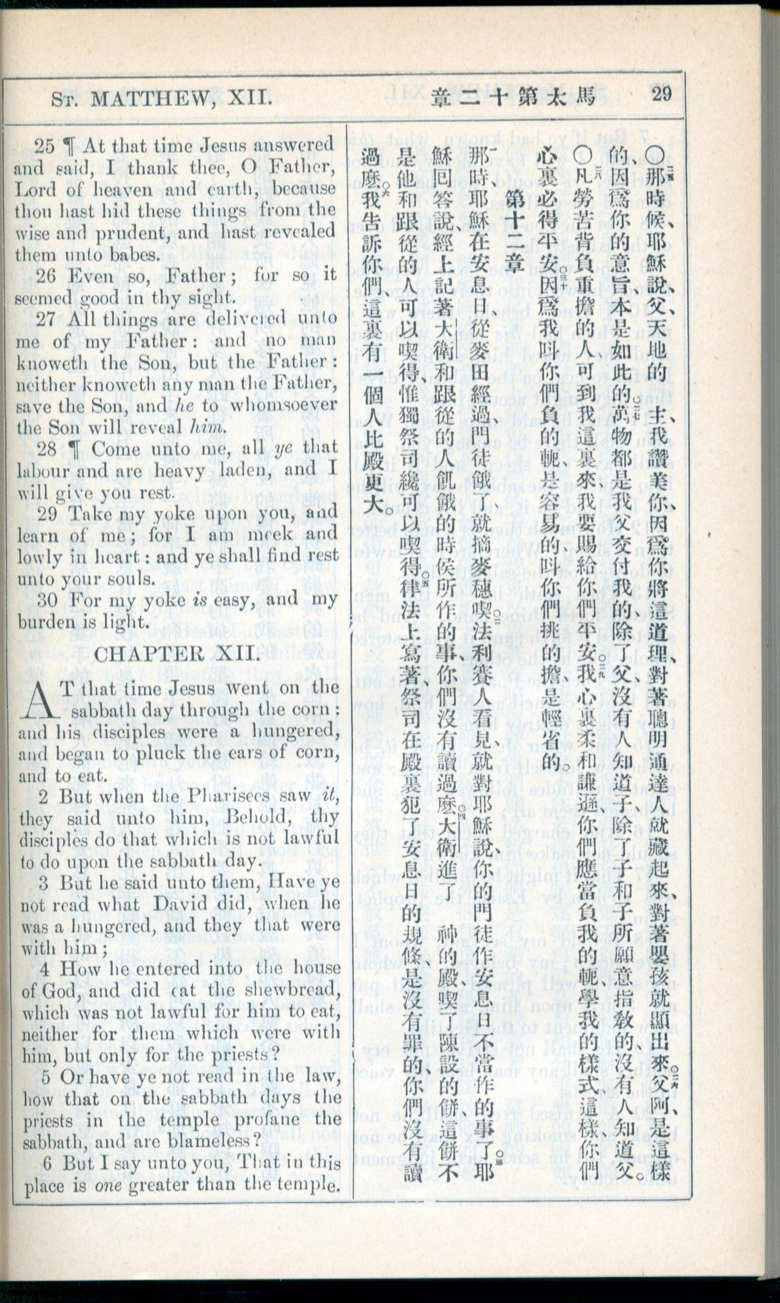 1908年新约全书(中西字) 马太福音 11 章 25 节到 12 章 6 节