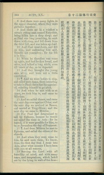 1908年新约全书(中西字) 使徒行传 20 章 8 节到 20 章 19 节