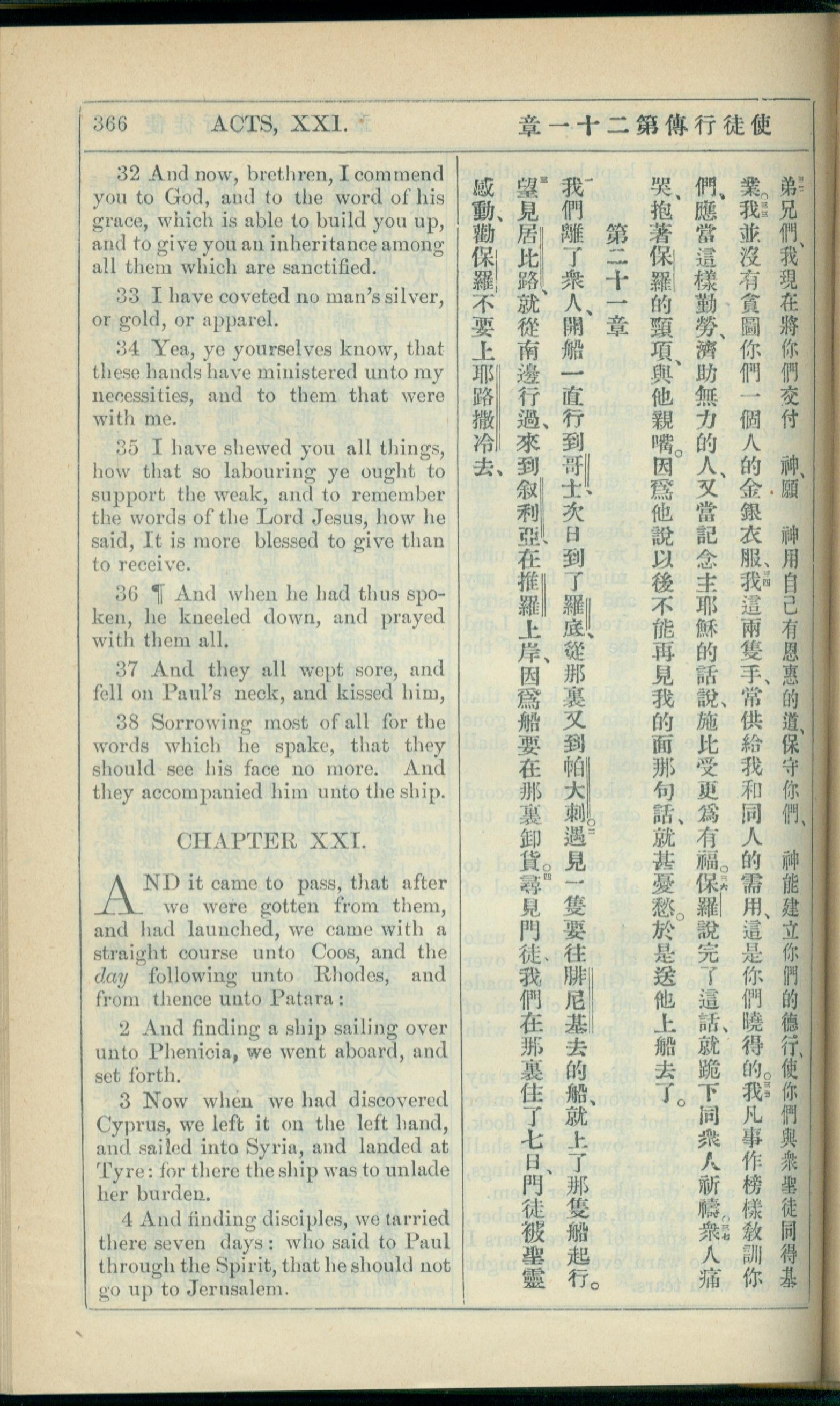 1908年新约全书(中西字) 使徒行传 20 章 32 节到 21 章 4 节