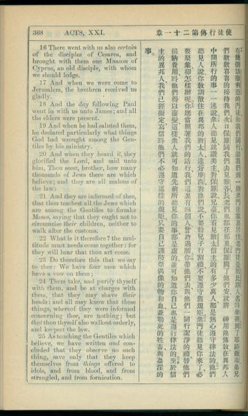 1908年新约全书(中西字) 使徒行传 21 章 16 节到 21 章 25 节