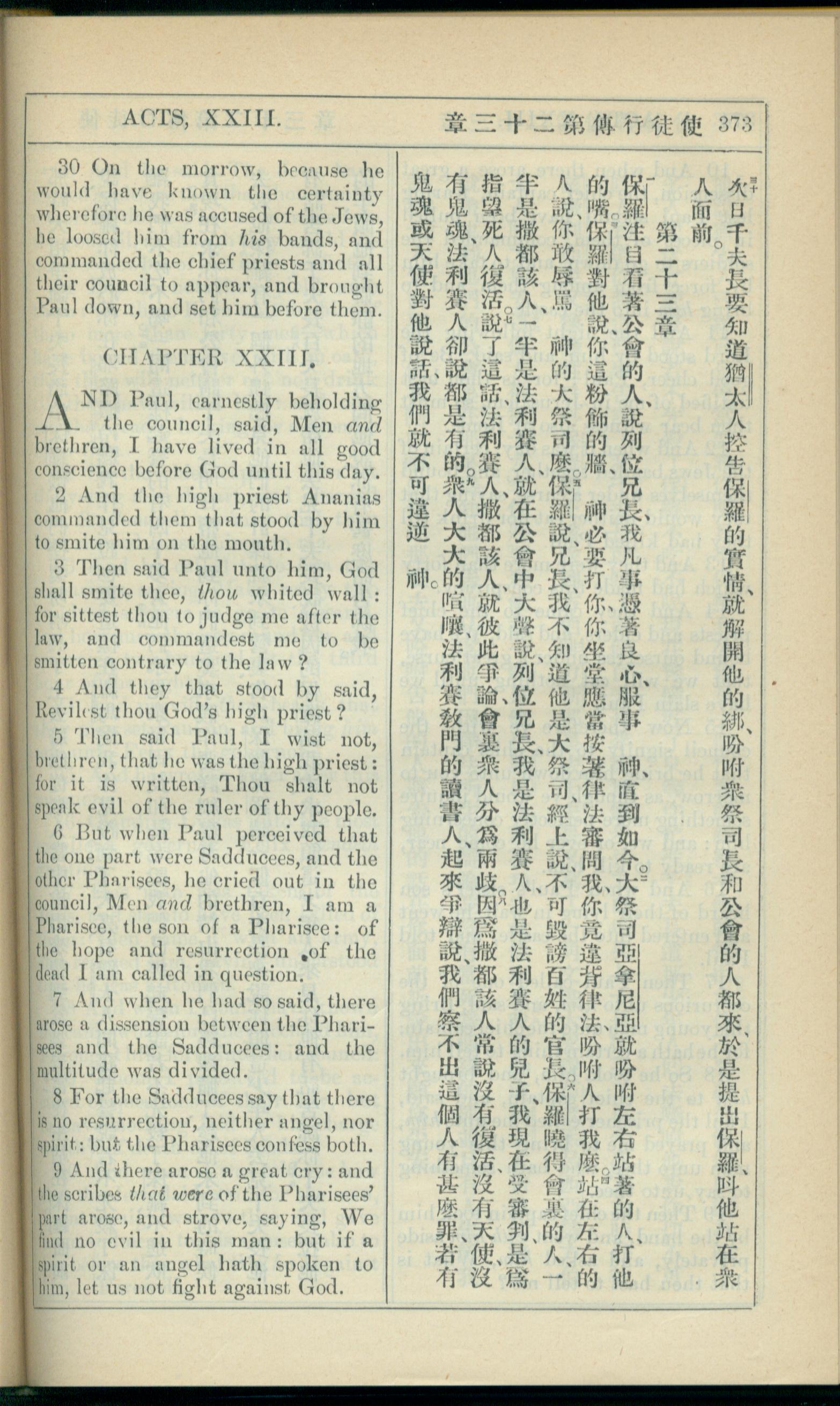 1908年新约全书(中西字) 使徒行传 22 章 30 节到 23 章 9 节
