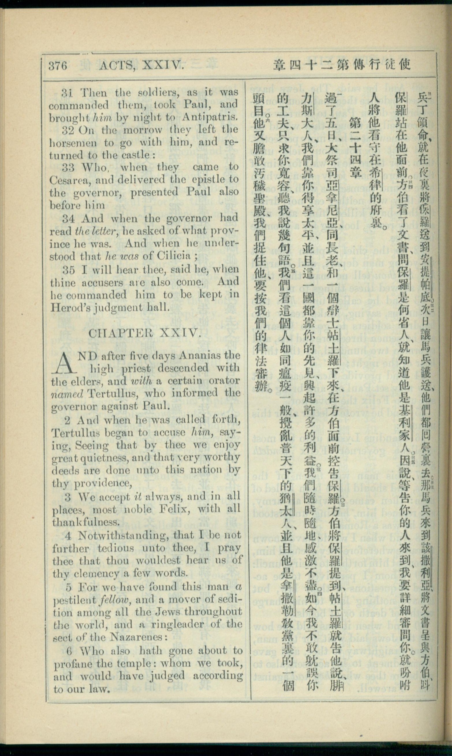 1908年新约全书(中西字) 使徒行传 23 章 31 节到 24 章 6 节