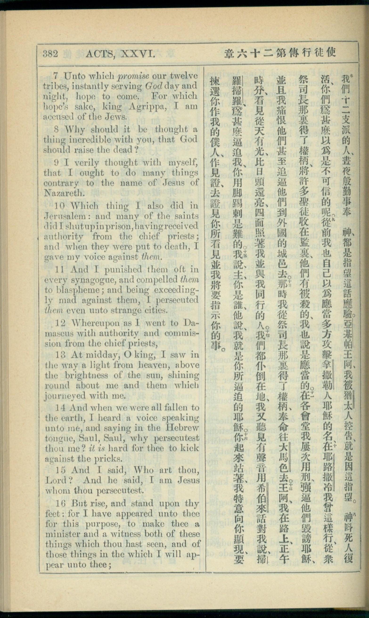 1908年新约全书(中西字) 使徒行传 26 章 7 节到 26 章 16 节