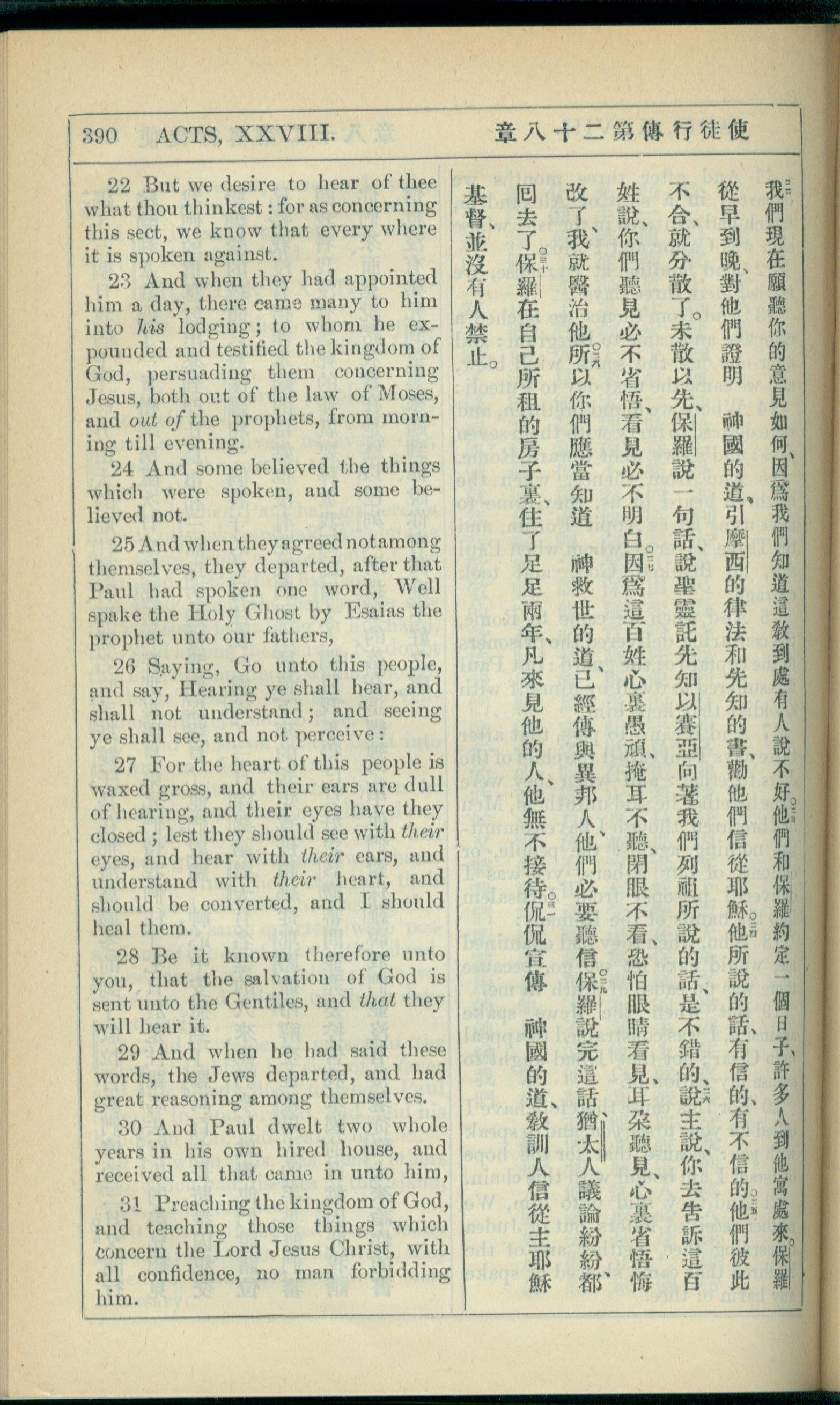 1908年新约全书(中西字) 使徒行传 28 章 22 节到 28 章 31 节