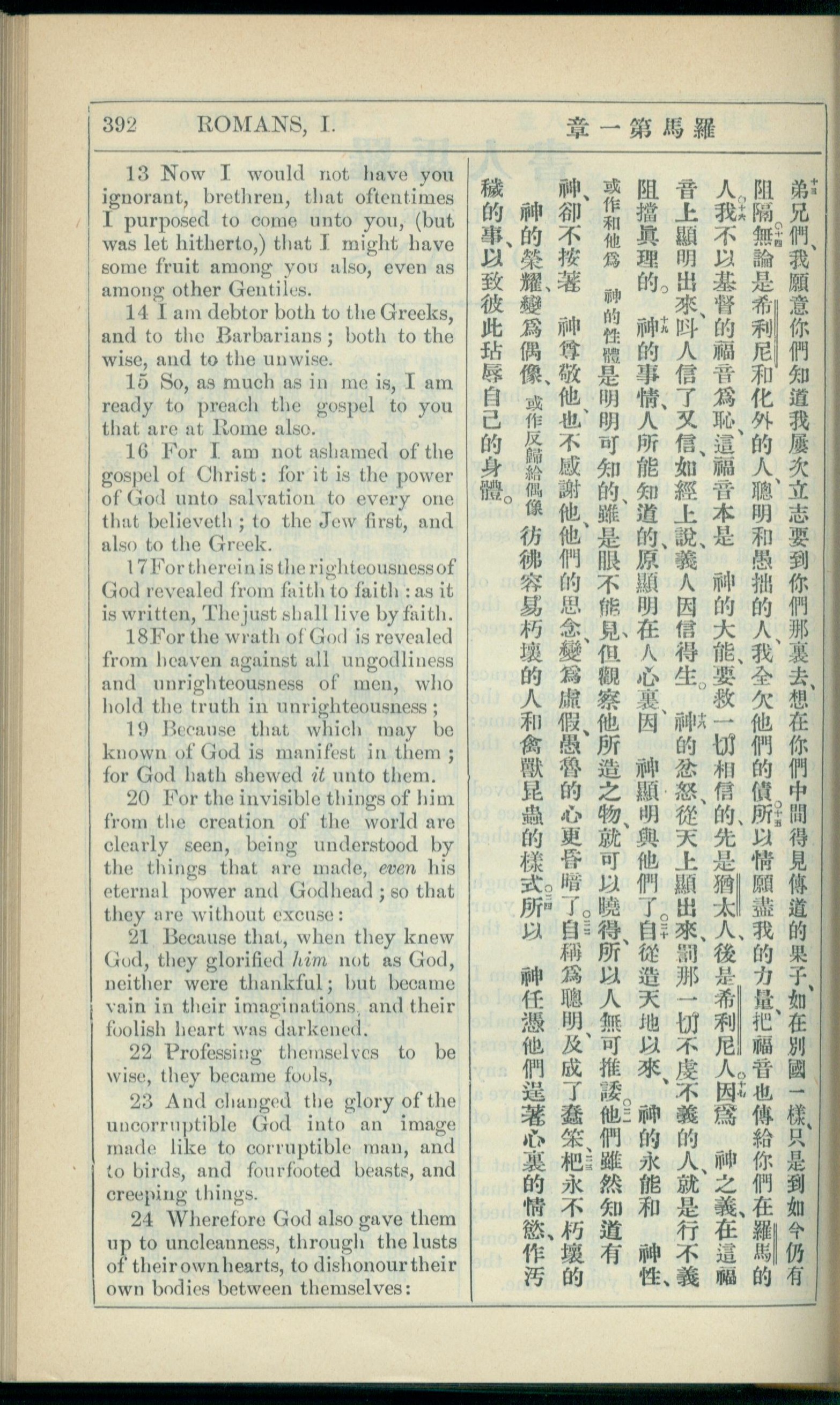 1908年新约全书(中西字) 罗马书 1 章 13 节到 1 章 24 节