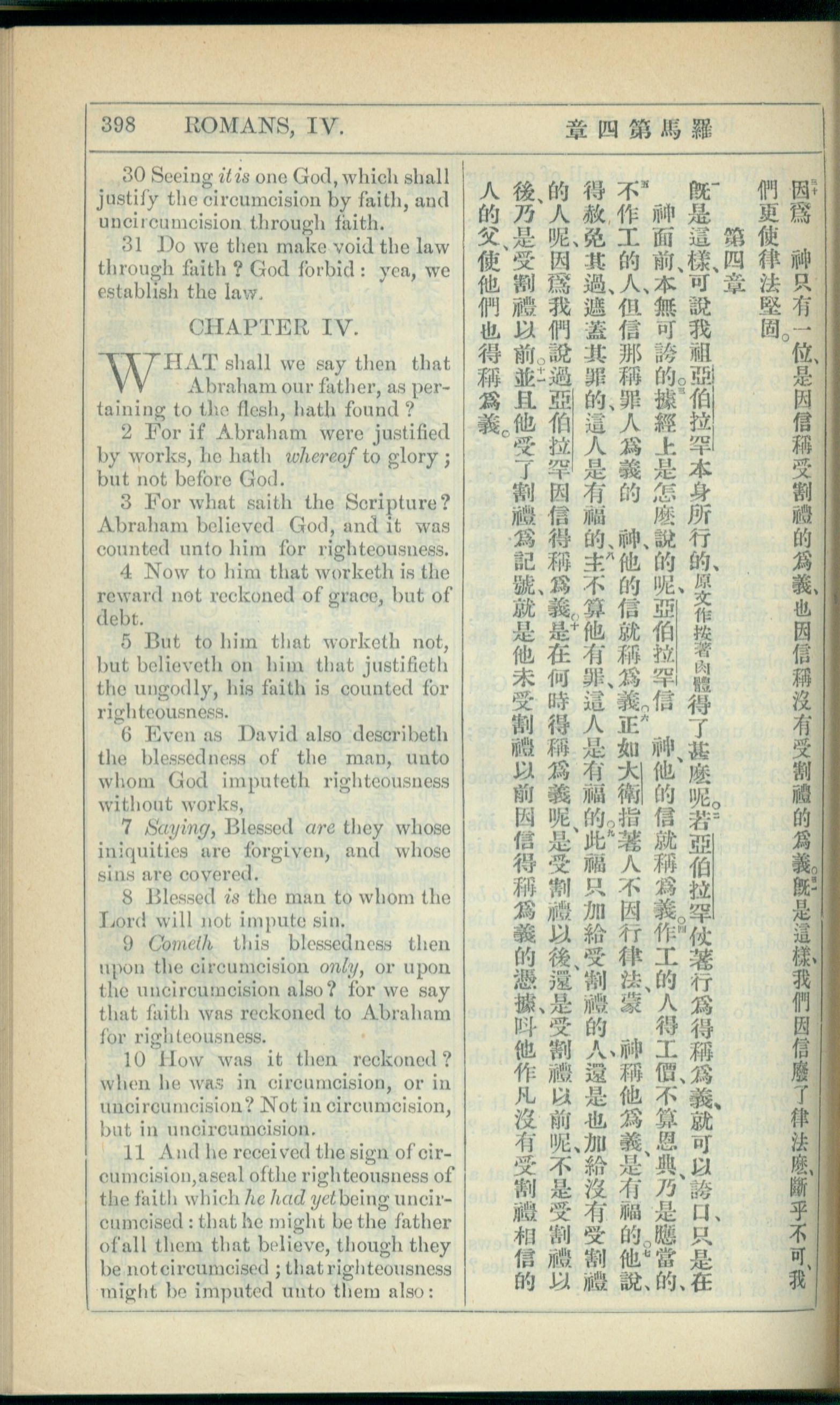 1908年新约全书(中西字) 罗马书 3 章 30 节到 4 章 11 节