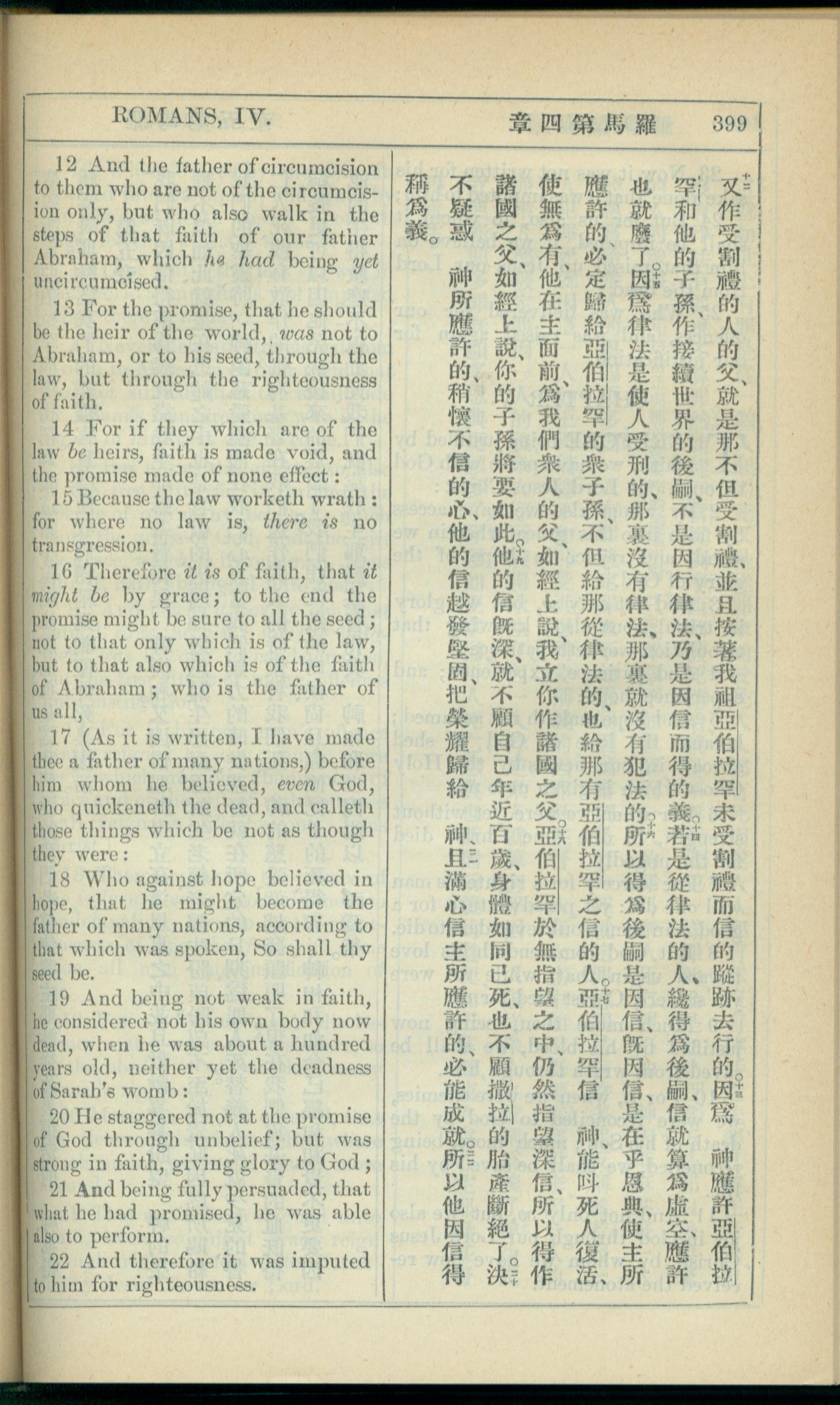 1908年新约全书(中西字) 罗马书 4 章 12 节到 4 章 22 节