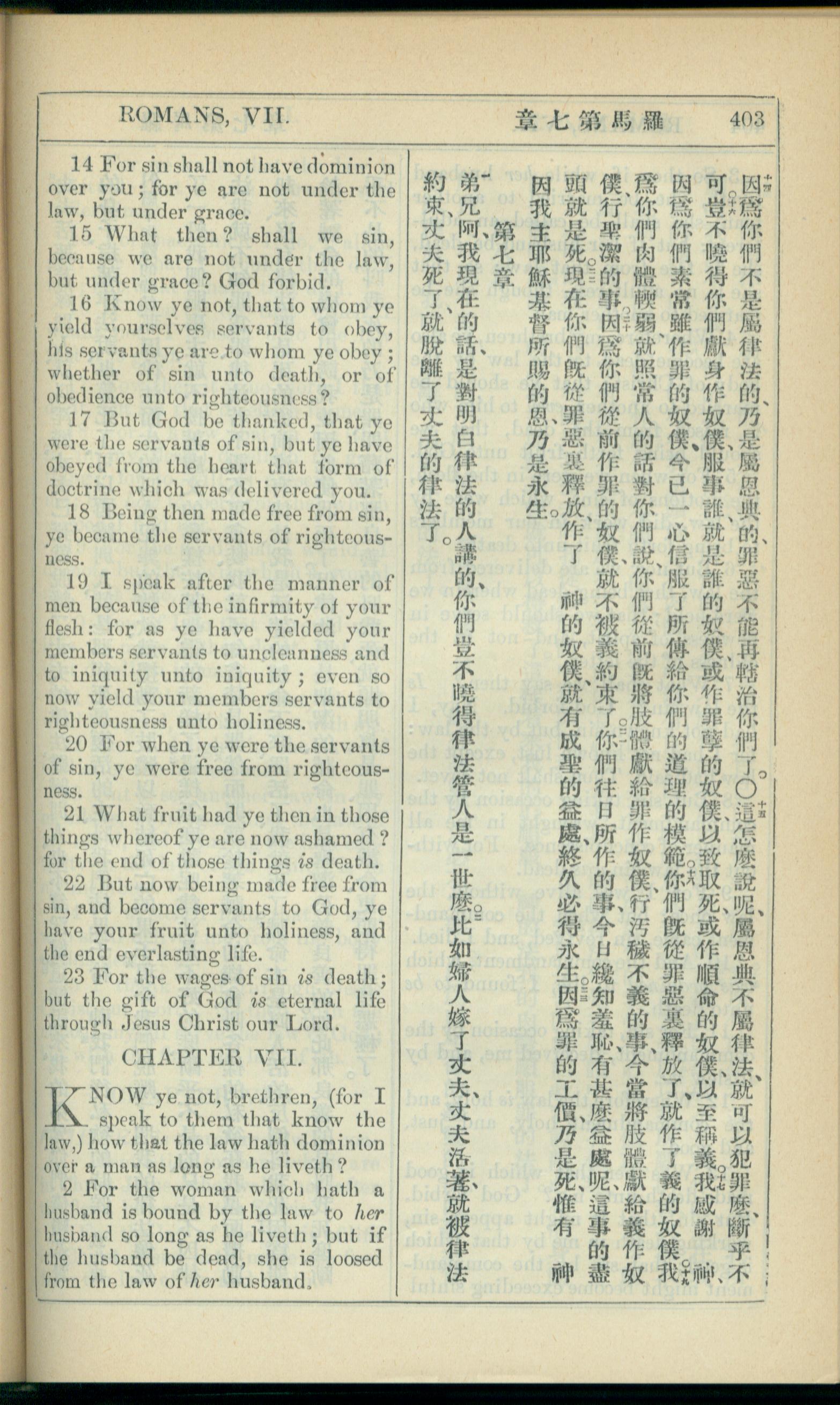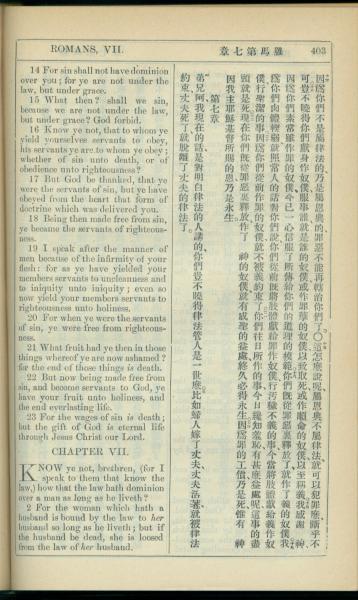 1908年新约全书(中西字) 罗马书 6 章 14 节到 7 章 2 节