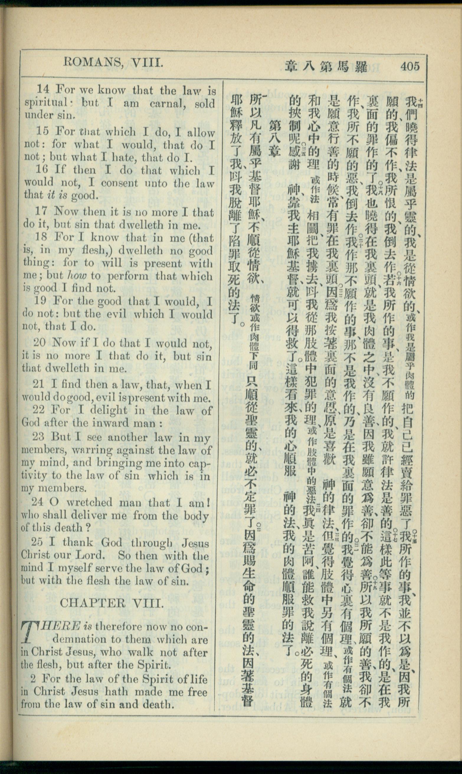 1908年新约全书(中西字) 罗马书 7 章 14 节到 8 章 2 节