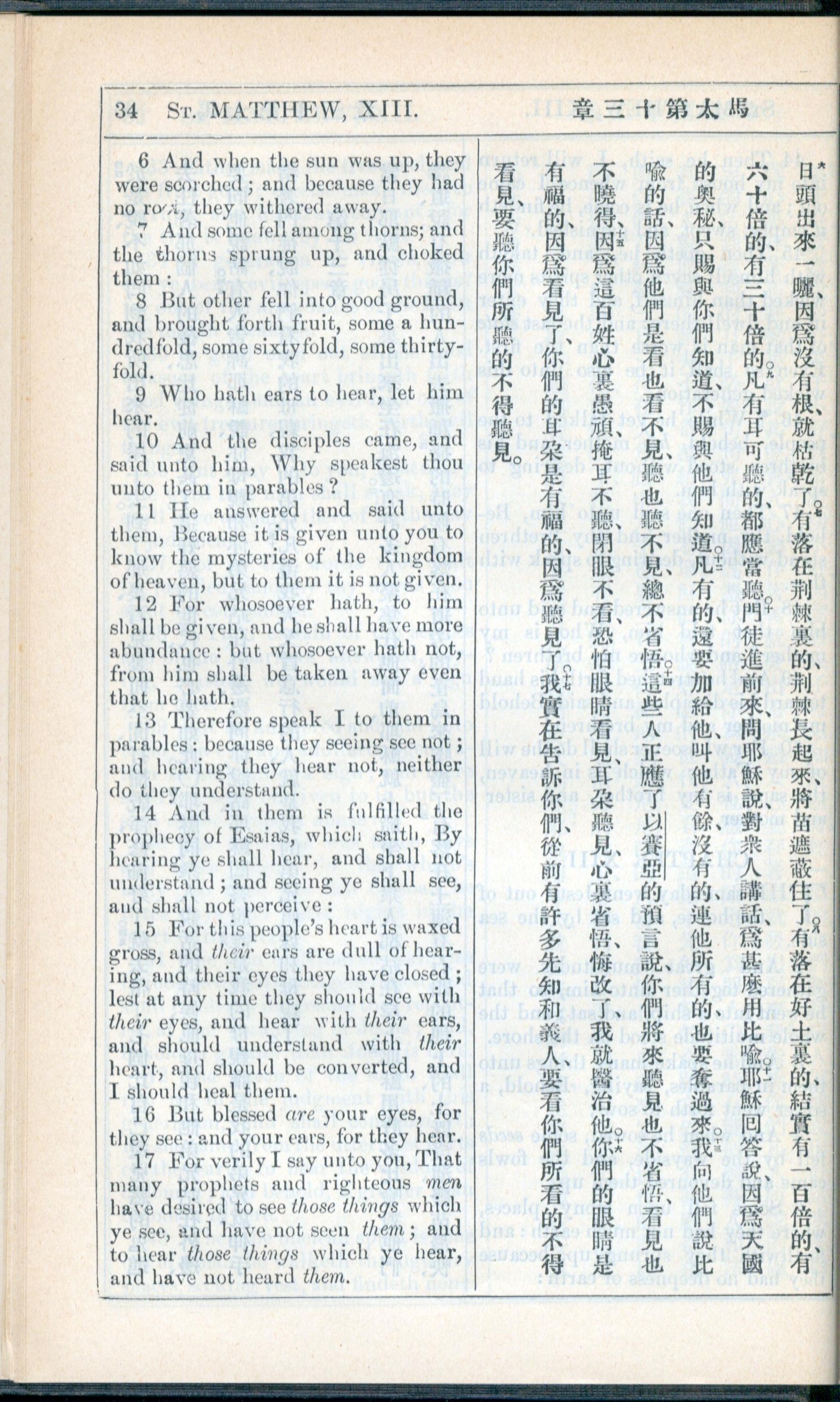 1908年新约全书(中西字) 马太福音 13 章 6 节到 13 章 17 节