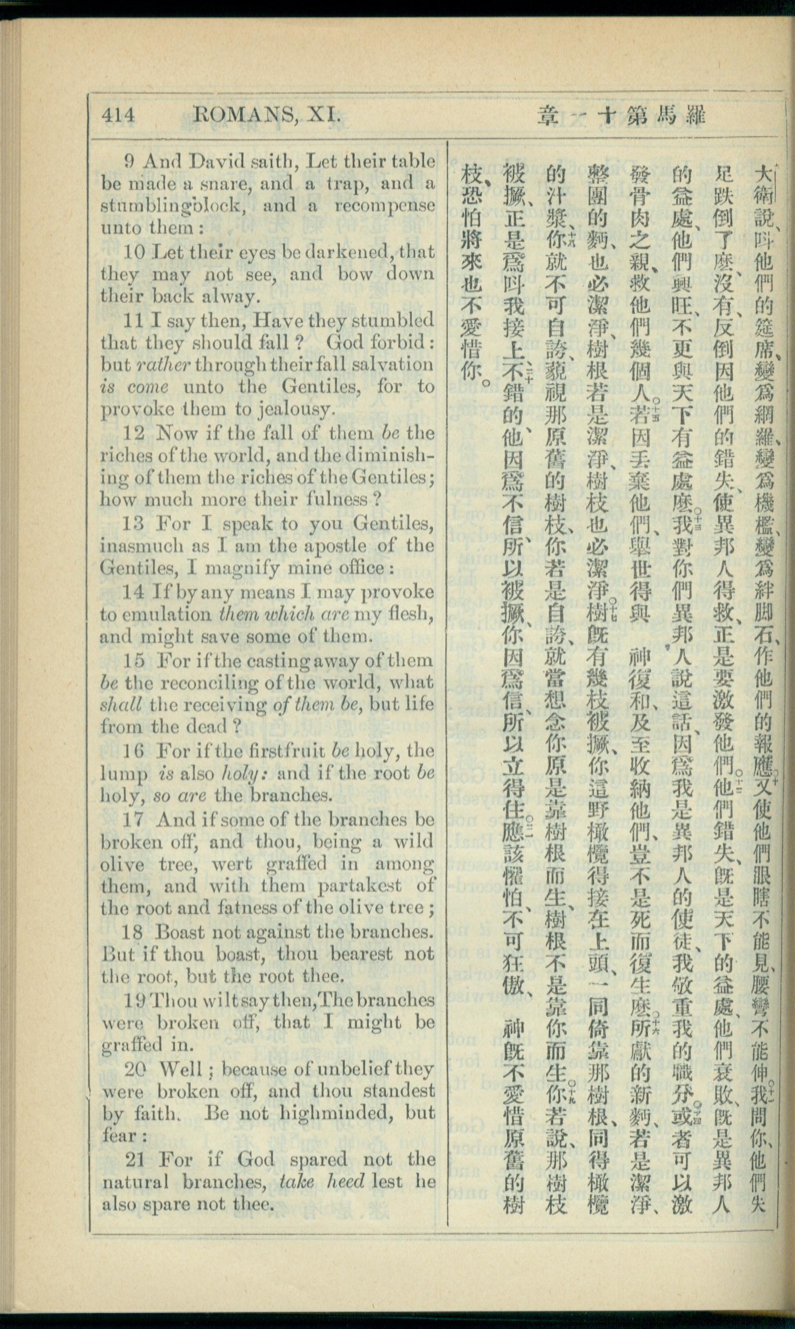 1908年新约全书(中西字) 罗马书 11 章 9 节到 11 章 21 节