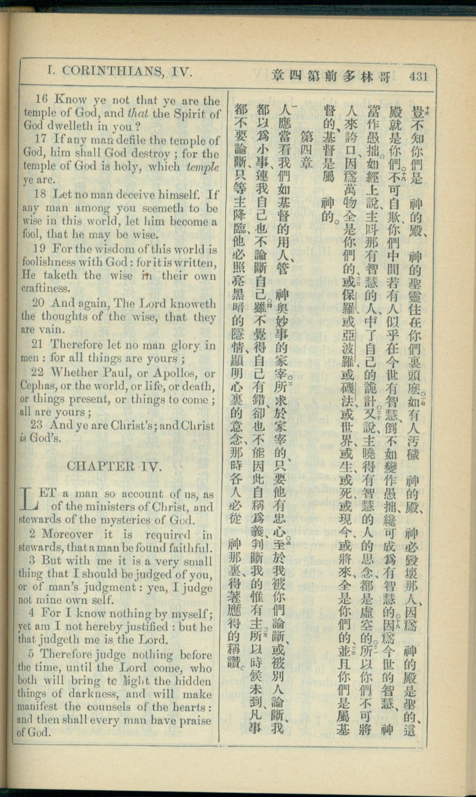1908年新约全书(中西字) 哥林多前书 3 章 16 节到 4 章 5 节